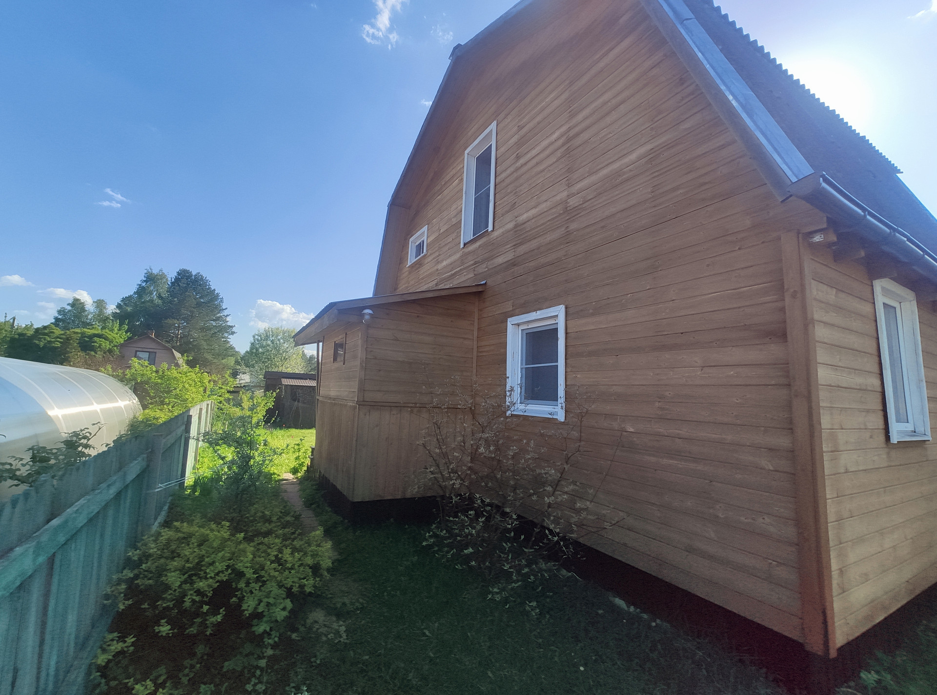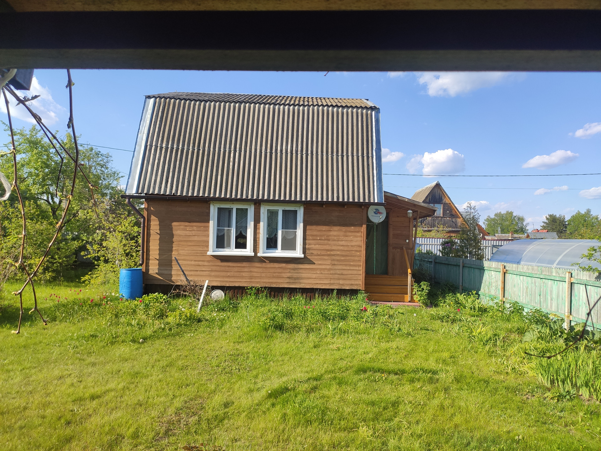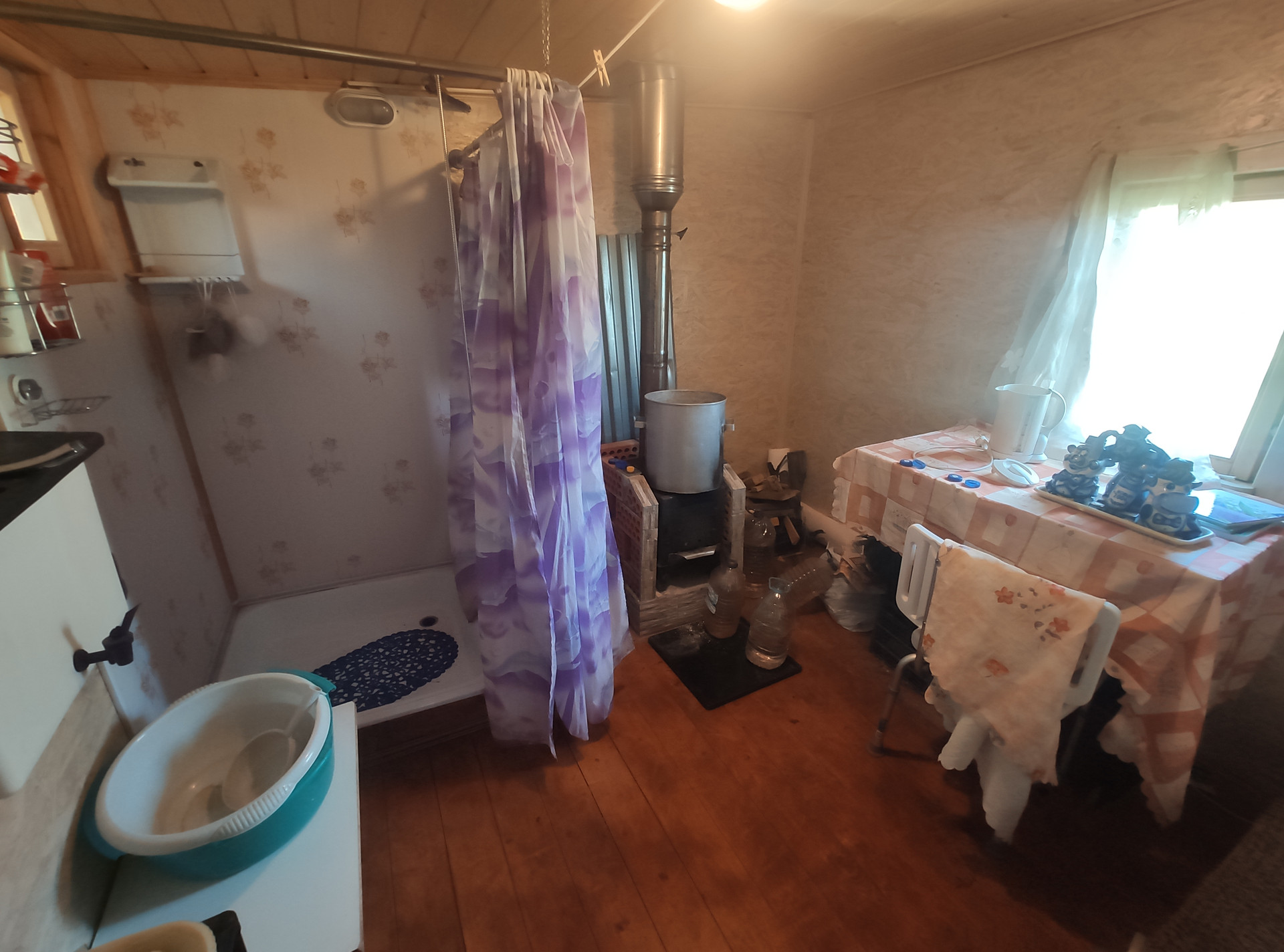 На участке есть свой колодец, сезонный водопровод для полива, летний душ с печкой, беседка для отдыха, дровник, туалет на улице. Участок правильной прямоугольной формы, огорожен, электричество проведено. Можно сразу заезжать и жить всё лето. Возможно и зимнее проживание, везде есть электрические конвекторы, стены утеплены. Окна ПВХ.