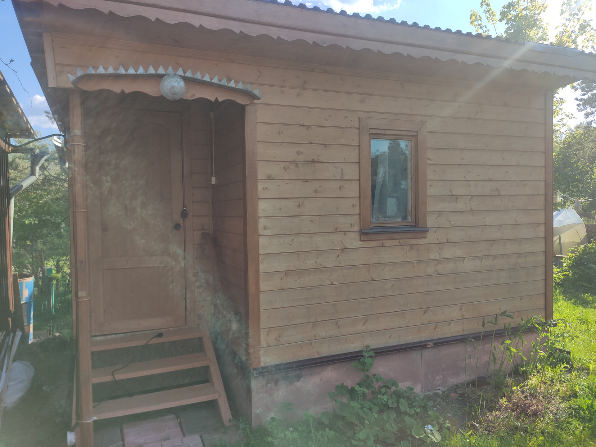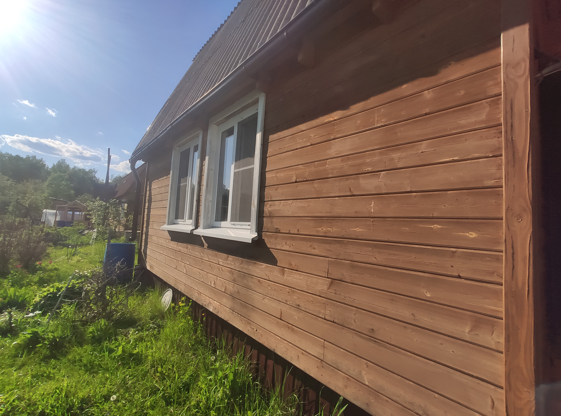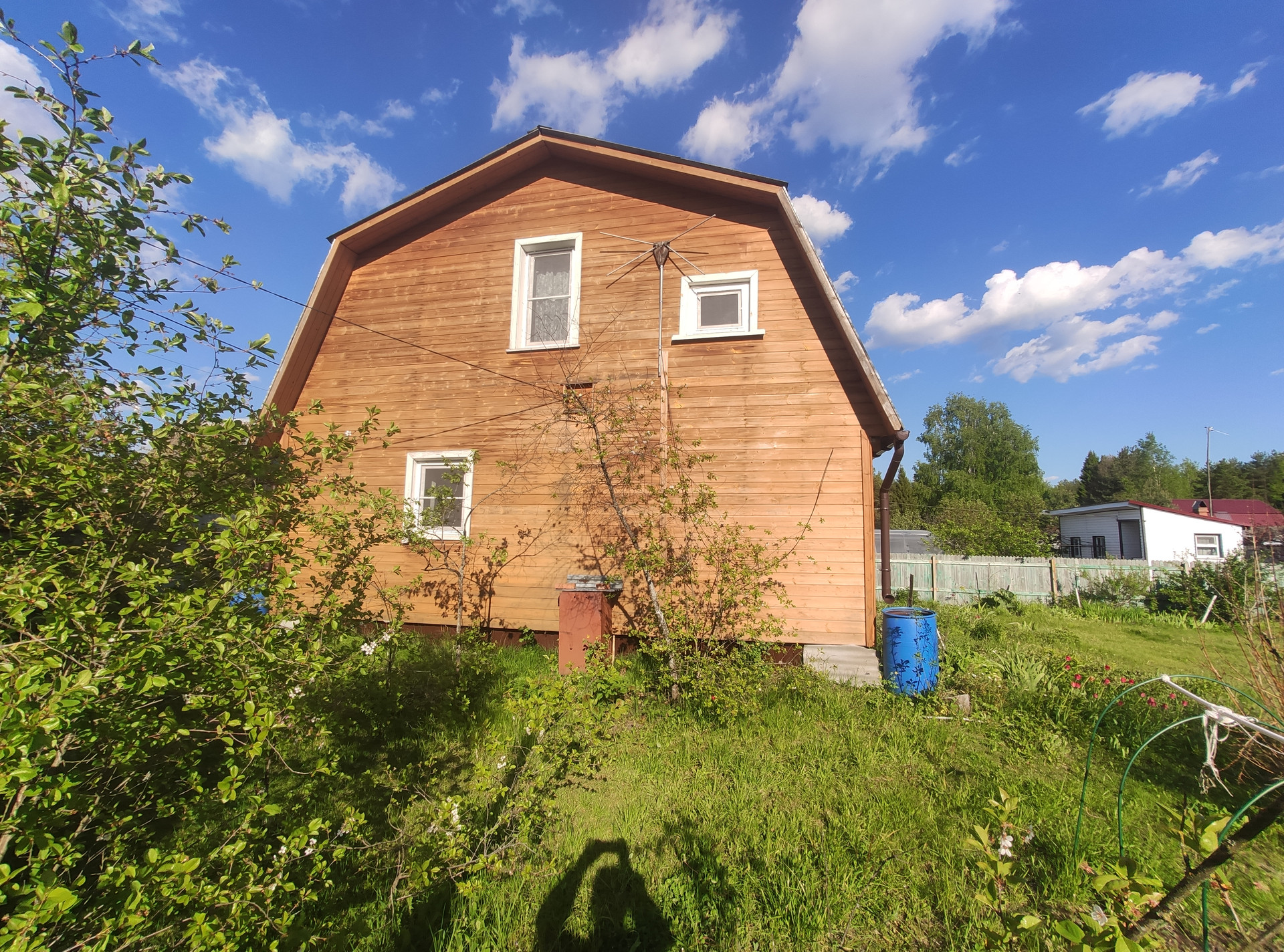 На участке есть свой колодец, сезонный водопровод для полива, летний душ с печкой, беседка для отдыха, дровник, туалет на улице. Участок правильной прямоугольной формы, огорожен, электричество проведено. Можно сразу заезжать и жить всё лето. Возможно и зимнее проживание, везде есть электрические конвекторы, стены утеплены. Окна ПВХ.
