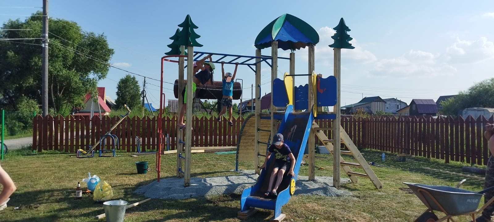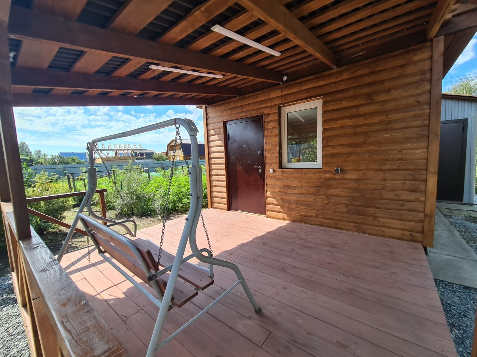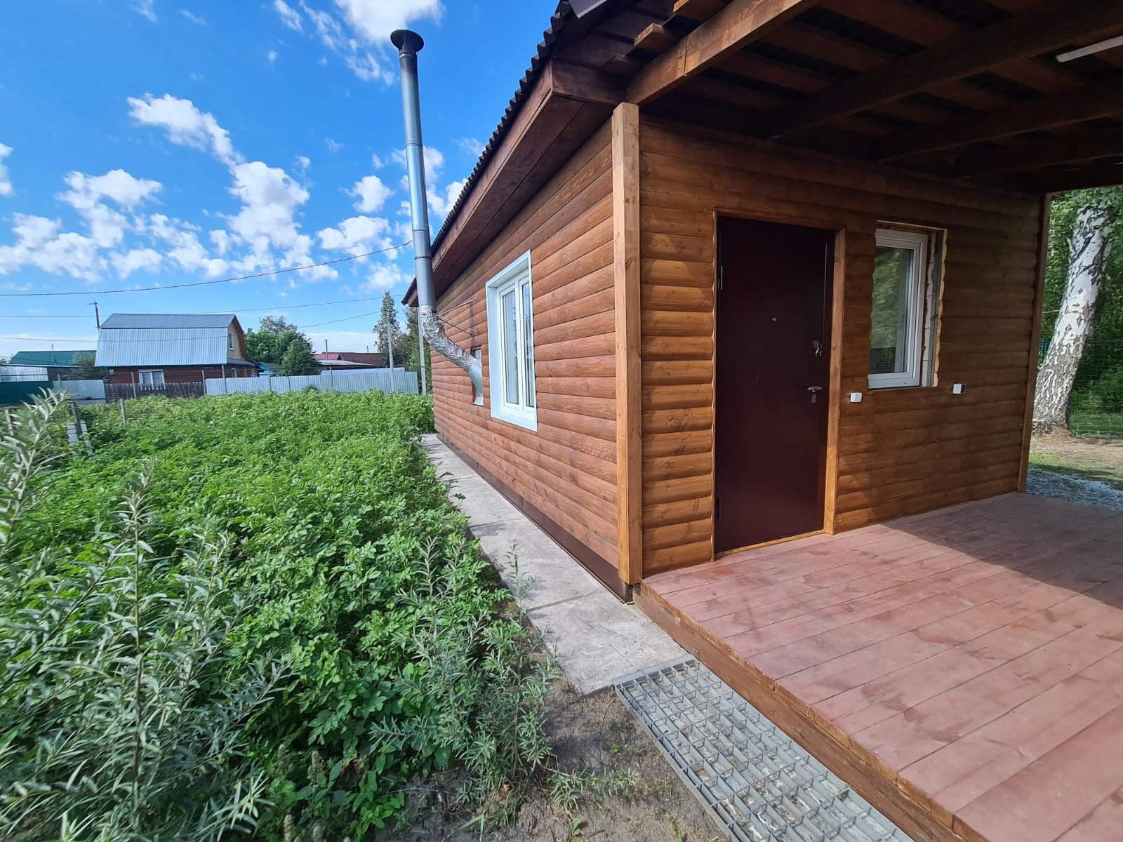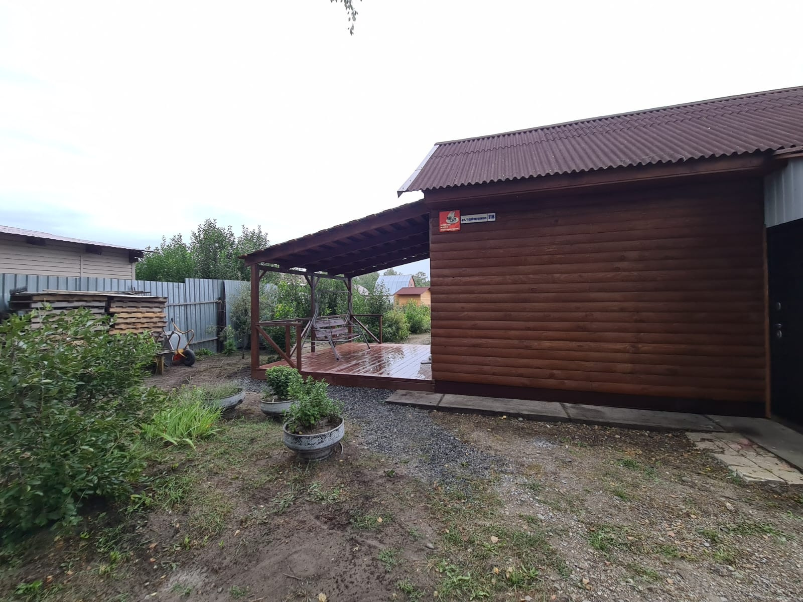 На участке посажены плодовые деревья, яблони, груши, слива, кустарники жимолости, смородины, крыжовник, вишня, облепиха. Грядки сделаны коробами для удобства полива и обработки. Огород вспахивается местным трактором, есть отдельные ворота для заезда техники.
