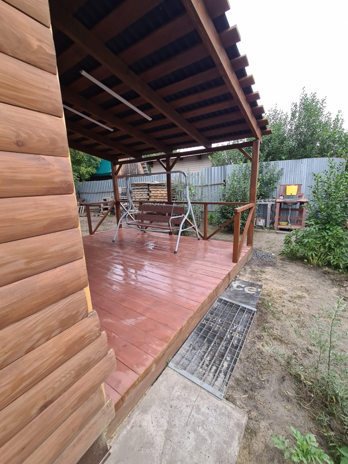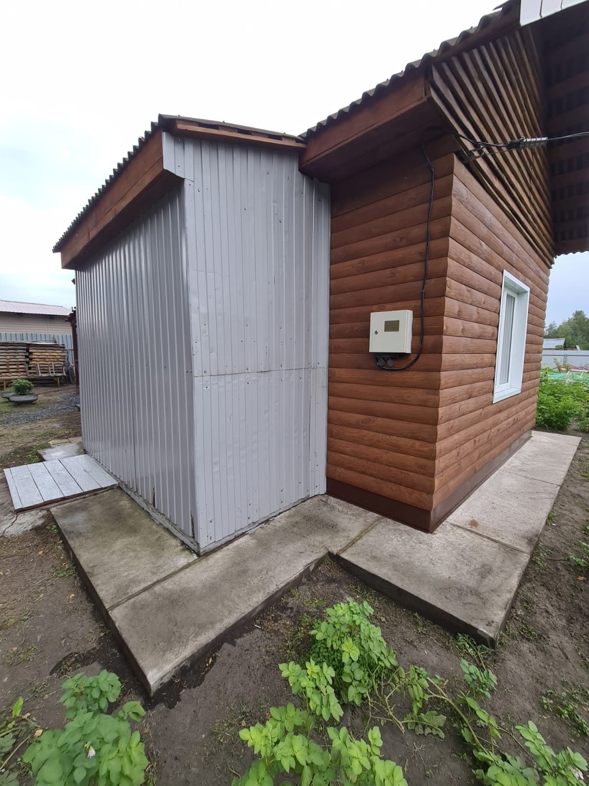 Дом из сибита 250мм., на бетонном фундаменте с беседкой. В доме установлена дровяная печь рассчитанная на обогрев до 8 часов. Установлены электро батареи (конвекторы). Дом нагревается очень быстро. Установлен резервный бак на воду (500л), водонагреватель на 50л., туалет, душевая и кухня сливаются в выгребную яму.