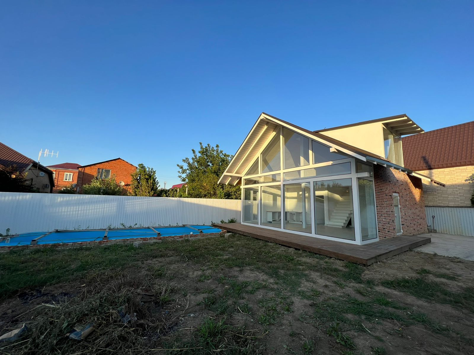 Продаю прекрасный жилой дом с панорамным остеклением и вторым светом в гостиной. В доме три жилые комнаты, сан. узел, котельная. Въезд забетонирован, забор кирпичный, фасад 28 метров. Дом кирпичный, со стороны остекления использовался сушённый брус. Всё делалось прочно и по технологии. В доме произведен ремонт, разведена проводка (ГОСТ), комунникации разведены. Во дворе есть бассейн и большая придомовая территория.