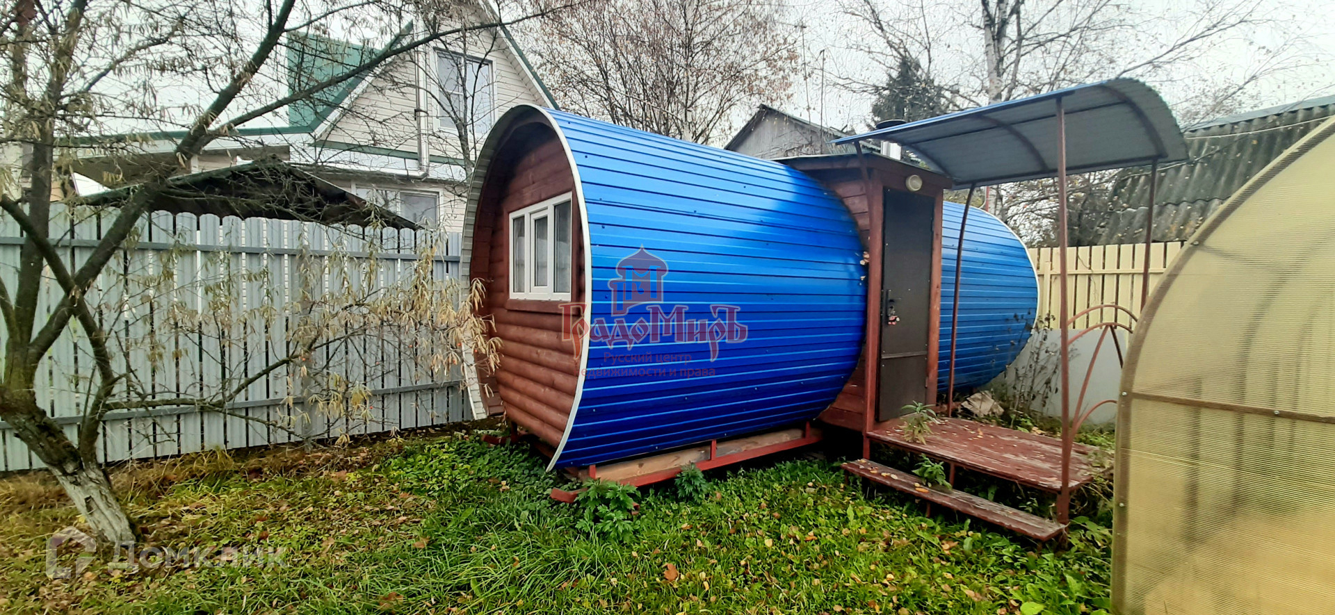 Новая баня(бочка) общей площадью 14 м2 с зоной отдыха и душевой.