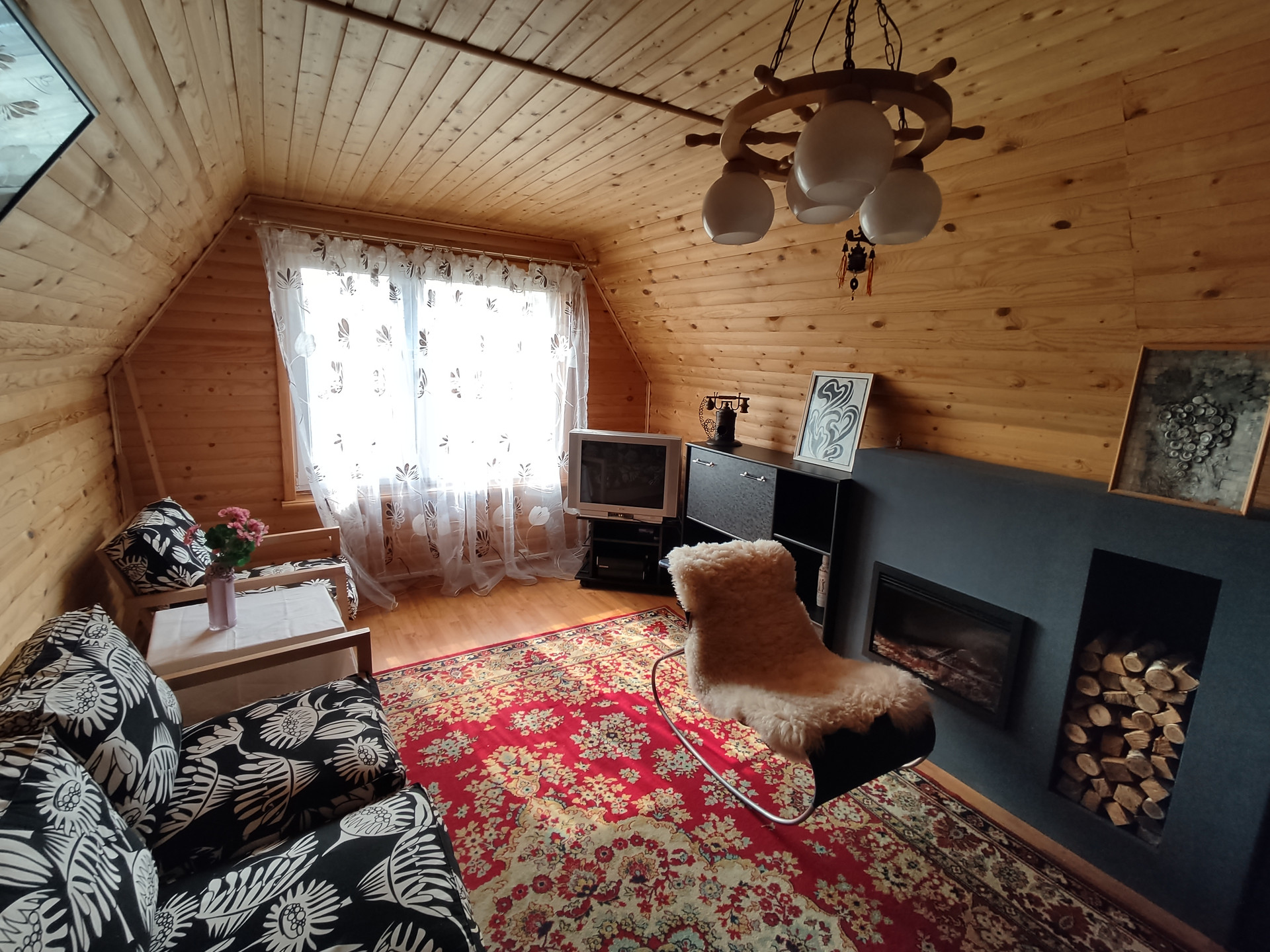 2-ой этаж: холл, спальня и большая гостиная. Коммуникации: электричество 1 фаза 10 клВт, отопление - электрические конвекторы и камин, новый центральный водопровод по всему СНТ, наличие холодной и горячей воды в доме. Газовый баллон. Внешняя отделка дома – сайдинг, внутри отделка блок хаус. Двери входные железные, в комнатах - деревянные. Дом полностью мебелирован, со всей необходимой бытовой техникой, все остается новому владельцу. На участке: летний душ, мангал с местом для отдыха, многолетние кустарники, цветы, а также плодовые кустарники и деревья (яблони, груши, сливы, смородина).