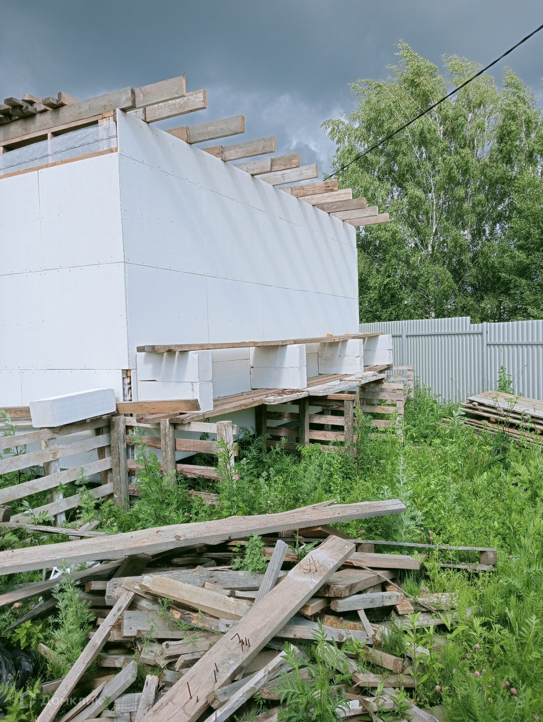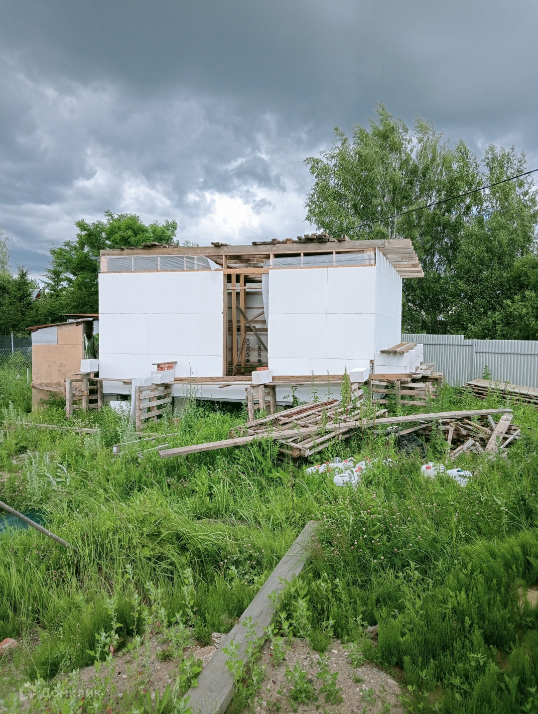 Арт. 47030413 Продам недостроенные дома в СНТ Возрождение на участке 6 соток. Один дом состоит из блоков стоит на ленточном фундаменте общей  площадью 120м2, возведен только первый этаж, вы можете достроить уже под себя. Второй каркасный 40 м2 обшит гвл (гипсоволокно).  На обшивку всего дома материал в наличии. На участке имеется колодец на 5 колец. Свет подведен, установлено видеонаблюдение.