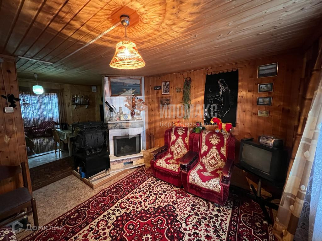 На первом этаже дома: кухня-веранда, гостиная с камином и комната.