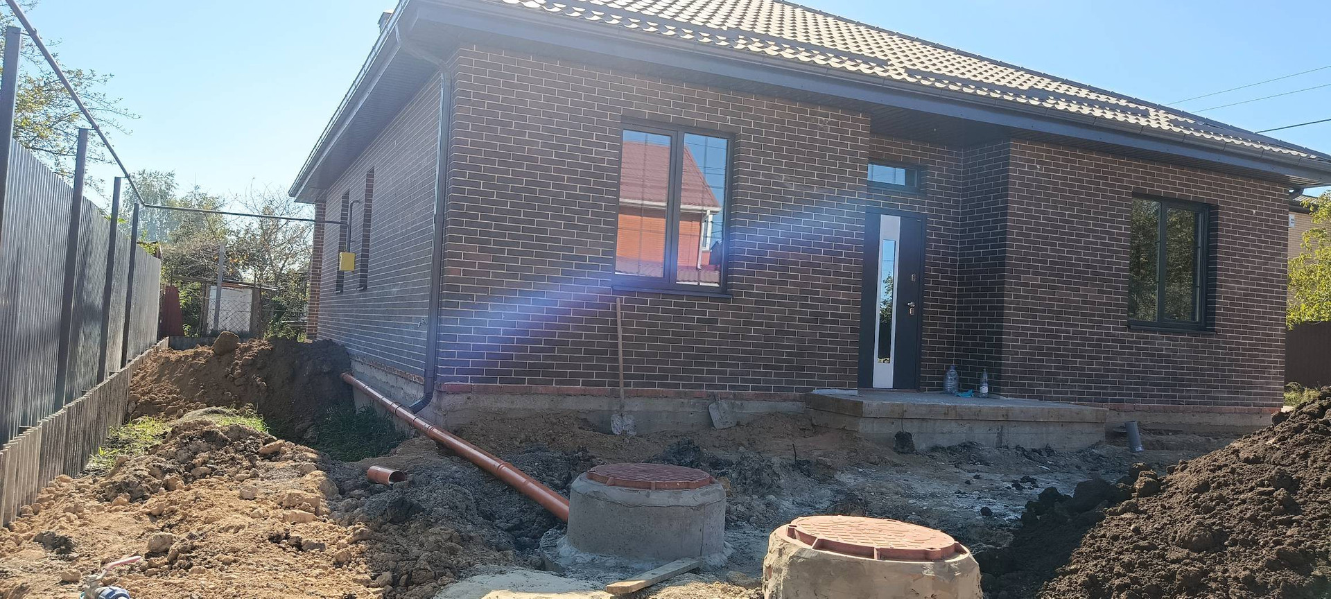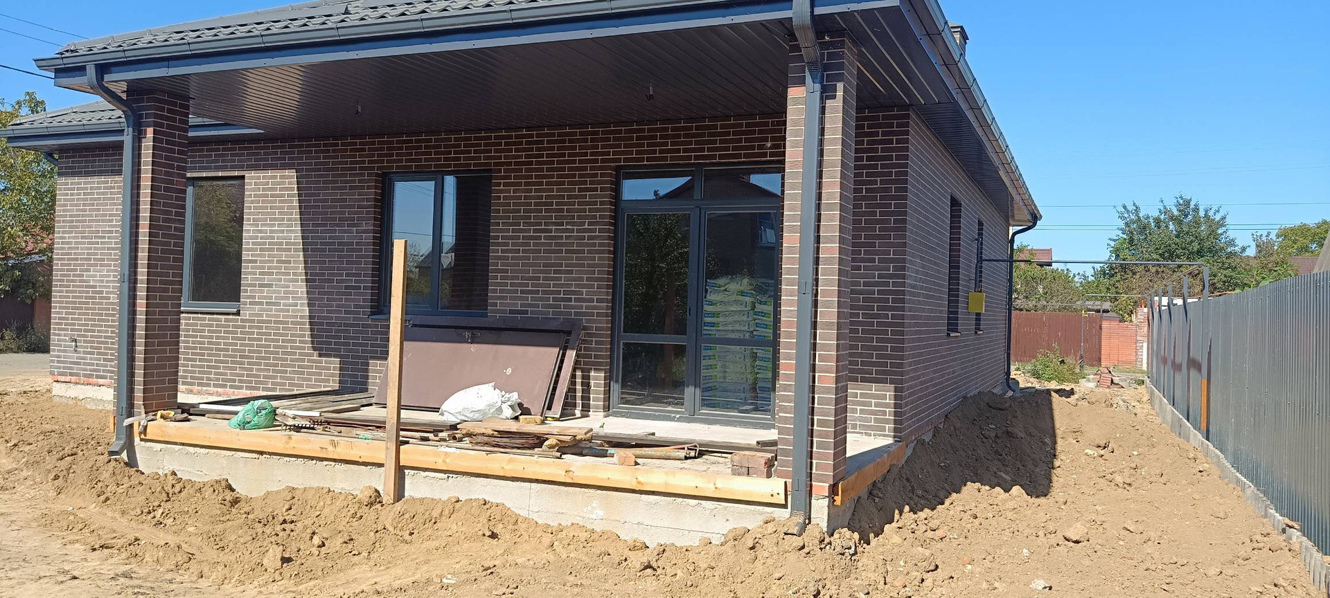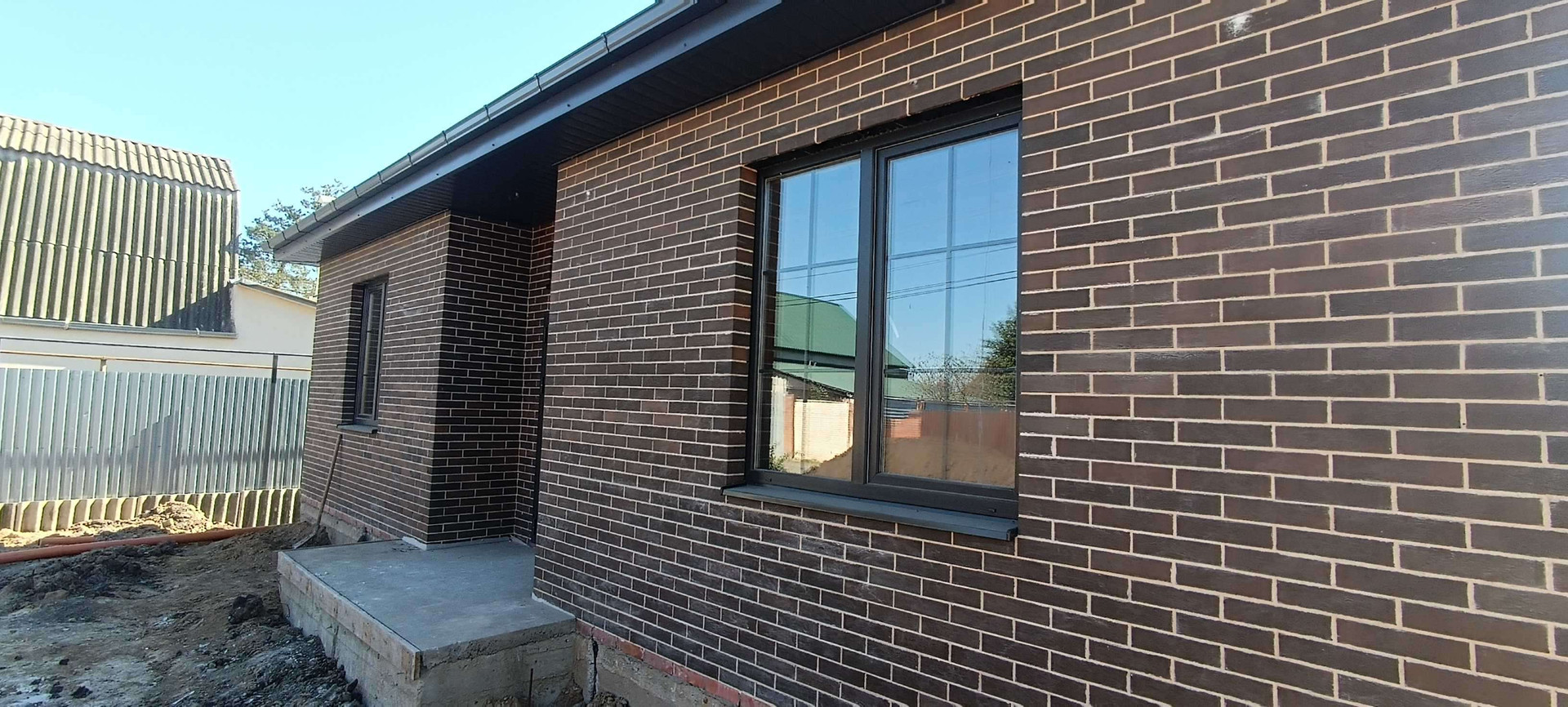 Дом полностью построен в 1,5 кирпича с утеплителем, на бетонном фундаменте глубиной более метра. Крыша металлочерепица с утеплением по потолку минеральной ватой. Качественная входная дверь с термо разрывом. Окна ламинированные, цвет графит с 70-м профилем и двойным стеклопакетом, поэтому зимой будет очень тепло и нигде не будет дуть.