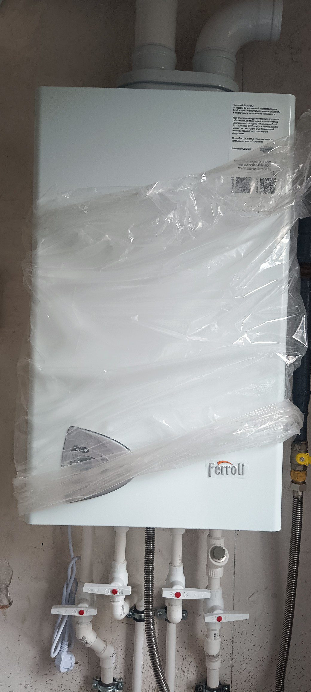 Газ, свет, городская вода уже заведены с договорами и лицевыми счетами. По дому полностью разведено электричество со слаботочкой (интернет, телевизионный кабель), водопровод, система канализации, система отопления и теплого пола (котёл Ferroli на 24 кВт, радиаторы отопления). Во дворе смонтирована сливная яма из бетонных колец с переливом и колодец с городской водой и узлом учёта.
