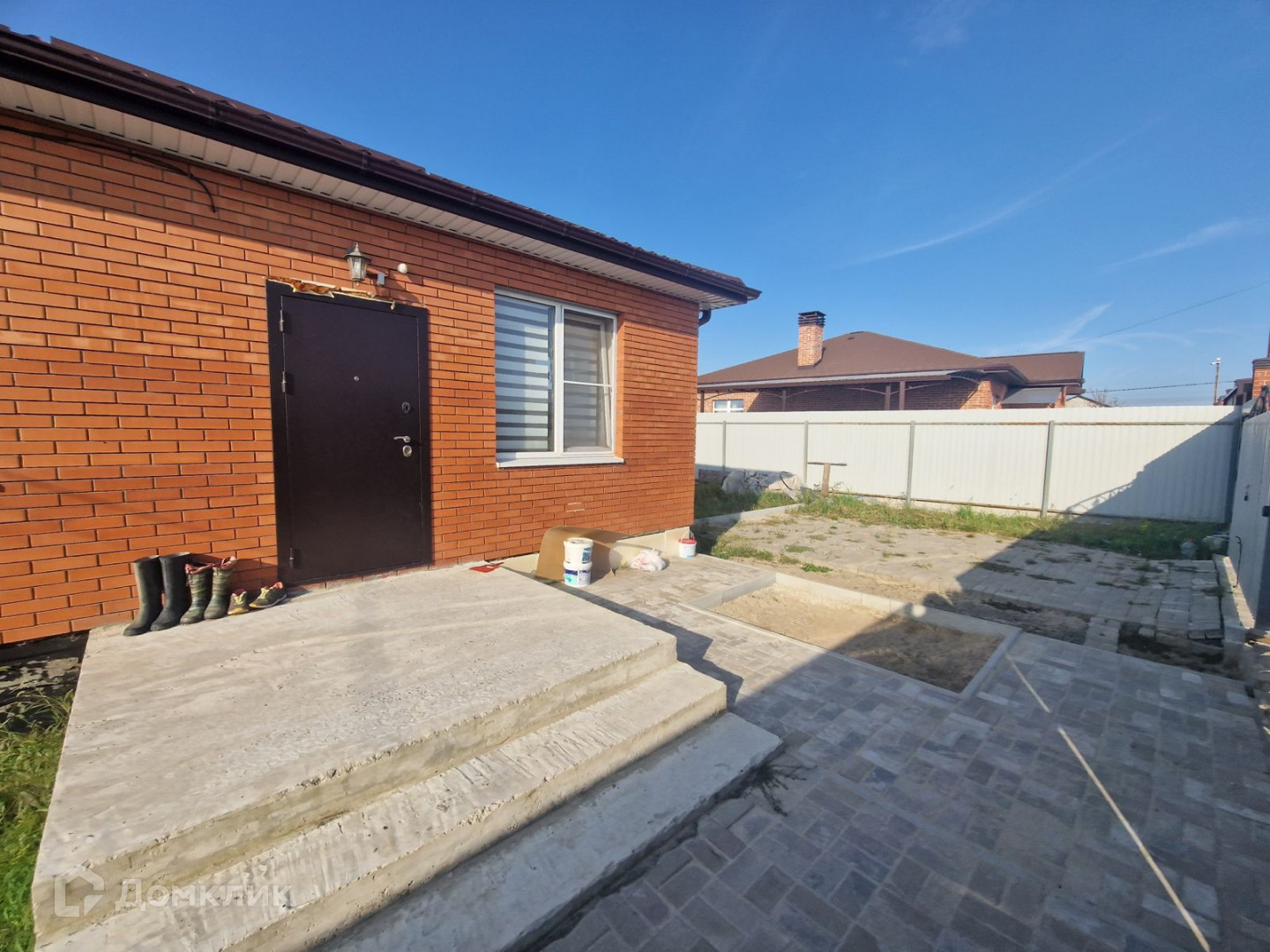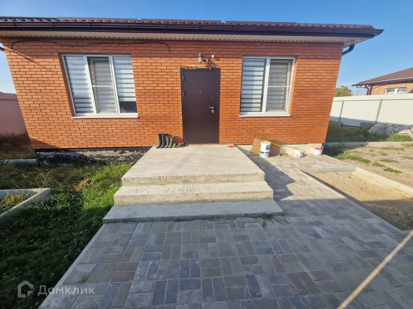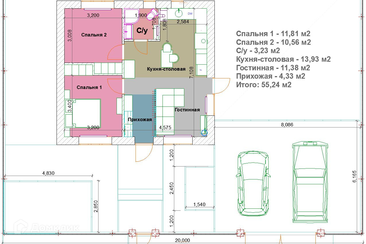 Участок 6 соток, правильной формы и имеет размеры 20 метров (фасад) на 30 метров, участок по бокам граничит с двумя соседними участками, справа проживают соседи, слева свободный участок, сзади участка за забором проходит дорога. Дом располагается на участке компактно, справа от дома парковочное место для двух автомобилей, сзади и слева от дома есть много свободной земли под разные зоны - клумбы, зоны отдыха, саун и хозблоков под ваши потребности. Дом состоит из двух спален, изолированных друг от друга нишами под гардеробный шкаф, просторная кухня-гостиная с выходом на будущую террасу, в помещении много света, перед кухонной мойкой окно с видом на задний двор, совмещенный санузел с окном. В доме подключен газ, свет и вода, есть сливная яма. Мебель остается по договоренности.
