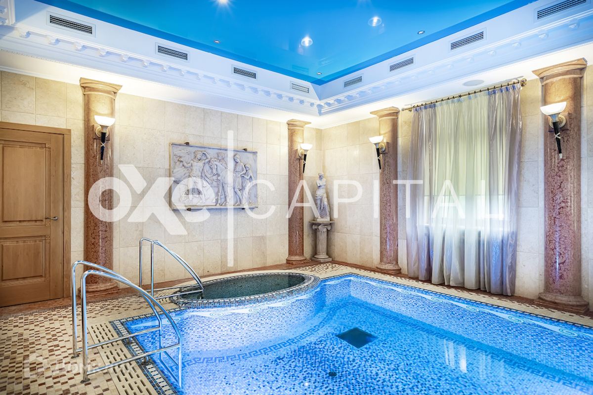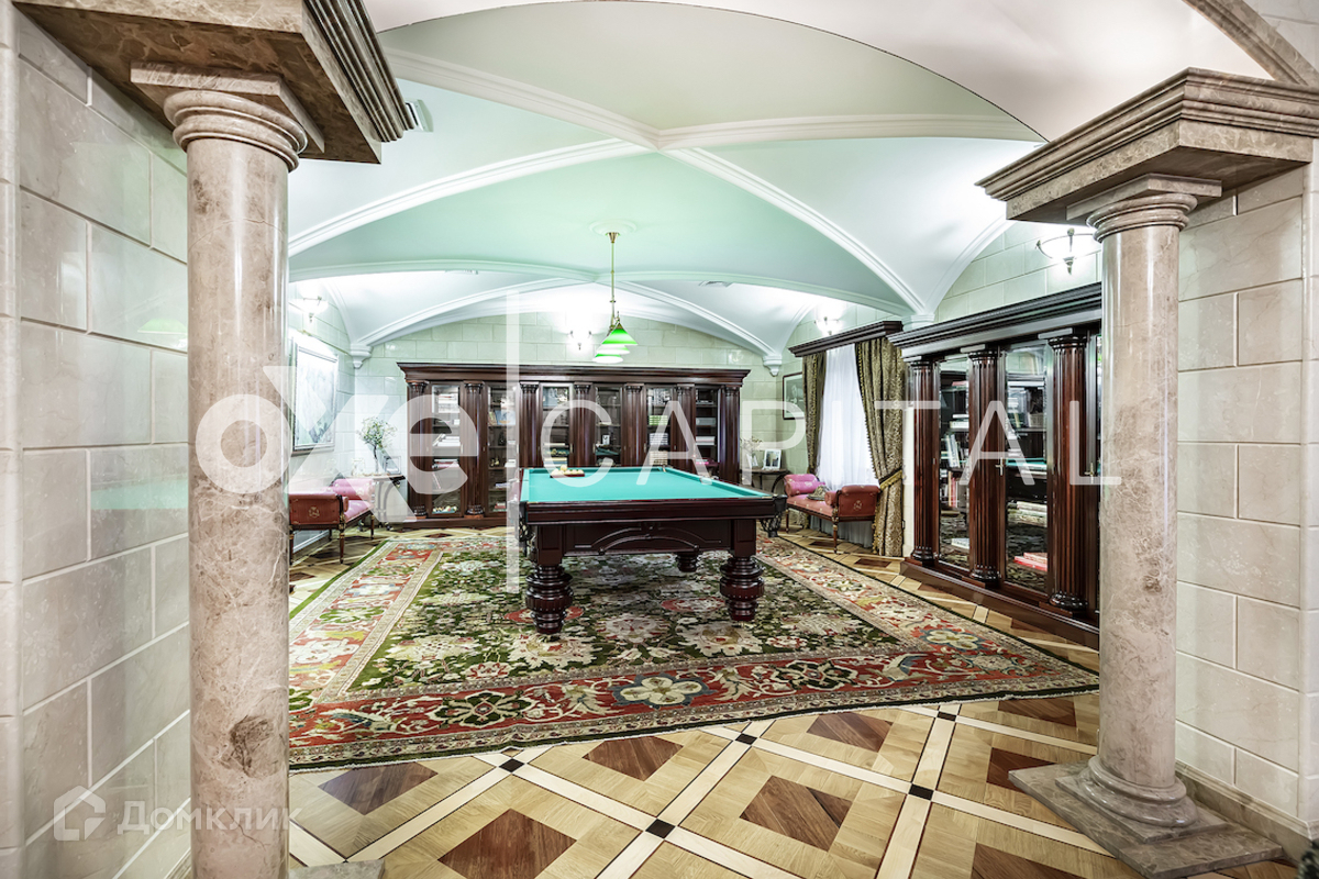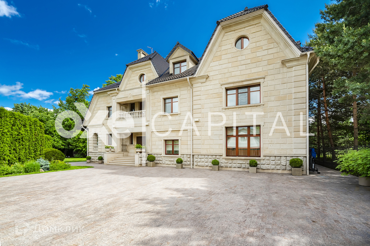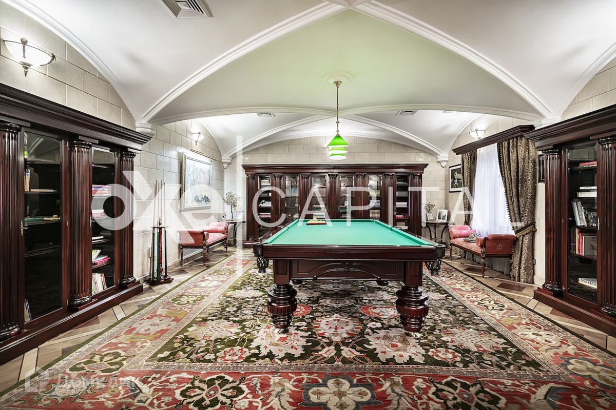 На участке: дом для охраны, закрытая беседка барбекю, гостевой дом с тренажерным залом, спальней и с/у, гараж на 3 м/м с двухкомнатной квартирой для персонала, детский игровой домик, водоем Цоколь: SPA-зона (хамам, сауна, бассейн, с/у), кинотеатр, винный погреб, постирочная, гардеробная, рабочая кухня, 2 с/у. 1 этаж: холл, гостиная, столовая, кухня. 2 этаж: кабинет-бильярдная, детская спальня с гардеробной и с/у, мастер-спальня, 2 гардеробные (женская и мужская), 2 с/у. 3 этаж: игровая, гардеробная, спальня с с/у и душем, спальня с с/у и ванной, спальный блок (спальня, небольшая гостиная, гардеробная, ванная комната) Гараж: отдельностоящий 3 м/м.