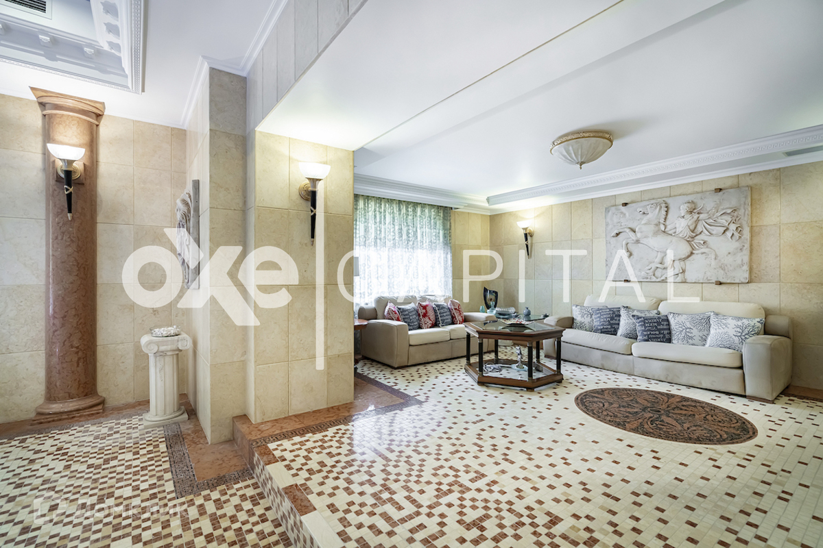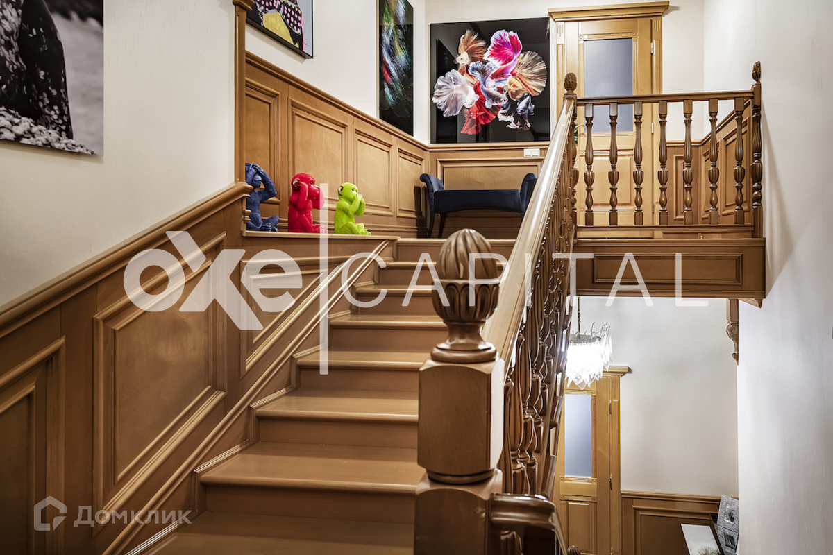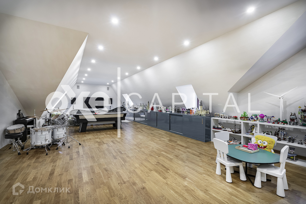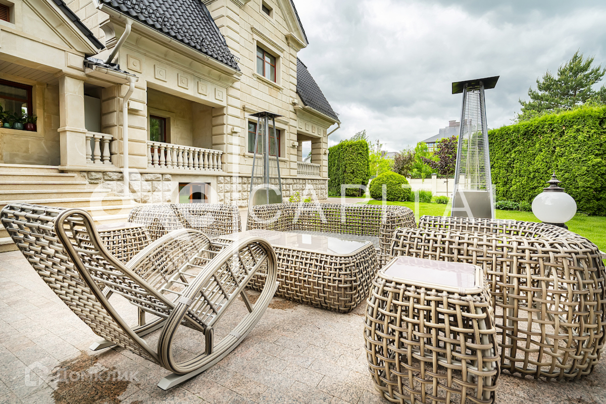 На участке: дом для охраны, закрытая беседка барбекю, гостевой дом с тренажерным залом, спальней и с/у, гараж на 3 м/м с двухкомнатной квартирой для персонала, детский игровой домик, водоем Цоколь: SPA-зона (хамам, сауна, бассейн, с/у), кинотеатр, винный погреб, постирочная, гардеробная, рабочая кухня, 2 с/у. 1 этаж: холл, гостиная, столовая, кухня. 2 этаж: кабинет-бильярдная, детская спальня с гардеробной и с/у, мастер-спальня, 2 гардеробные (женская и мужская), 2 с/у. 3 этаж: игровая, гардеробная, спальня с с/у и душем, спальня с с/у и ванной, спальный блок (спальня, небольшая гостиная, гардеробная, ванная комната) Гараж: отдельностоящий 3 м/м.