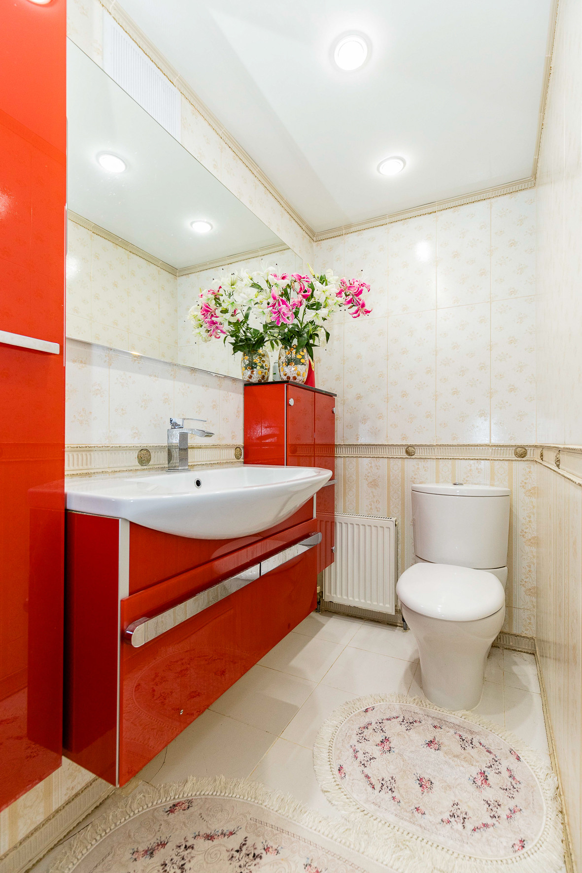 Непосредственно сама ванная выполнена из искусственного камня Staron (новый отделочный материал южнокорейской корпорации SAMSUNG, отличающийся экологичностью, устойчивостью к механическим повреждениям, не имеет аналогов).