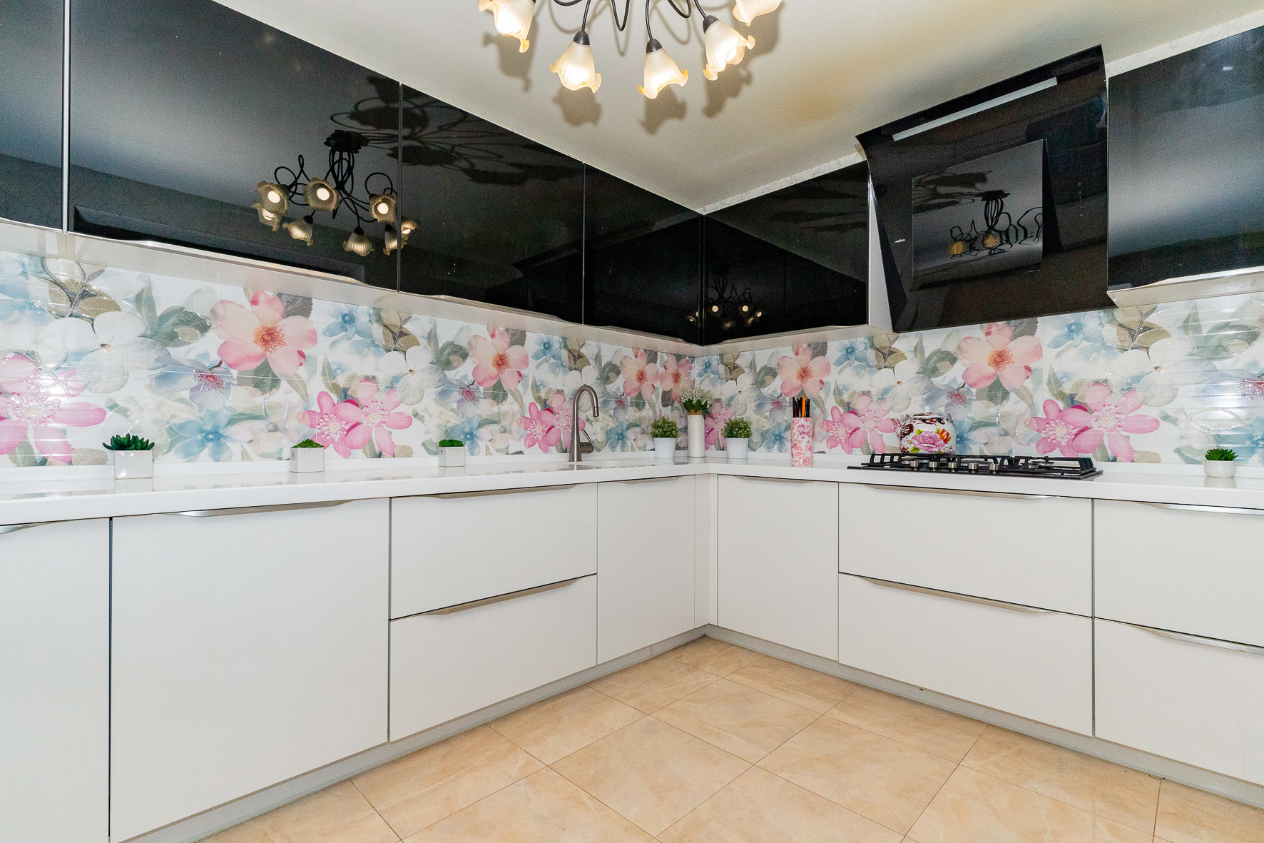 Встроенная мебель на кухню изготовлена на заказ, поставка напрямую из Германии, рабочая зона из каменной столешницы, встроенная бытовая техника ведущих мировых брендов.