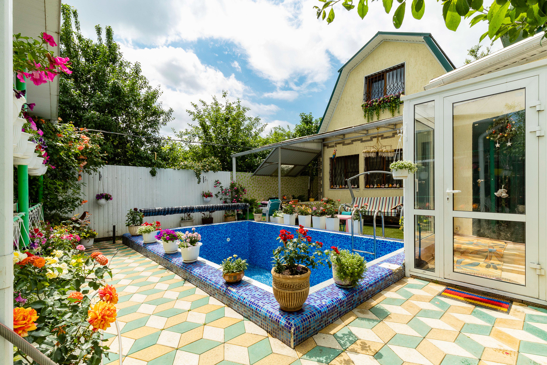 На территории двора размещен капитальный бассейн (6*4 м, глубиной 3 м) с системой фильтрации и подогревом от газового котла. Так же, для любителей попариться есть сауна.