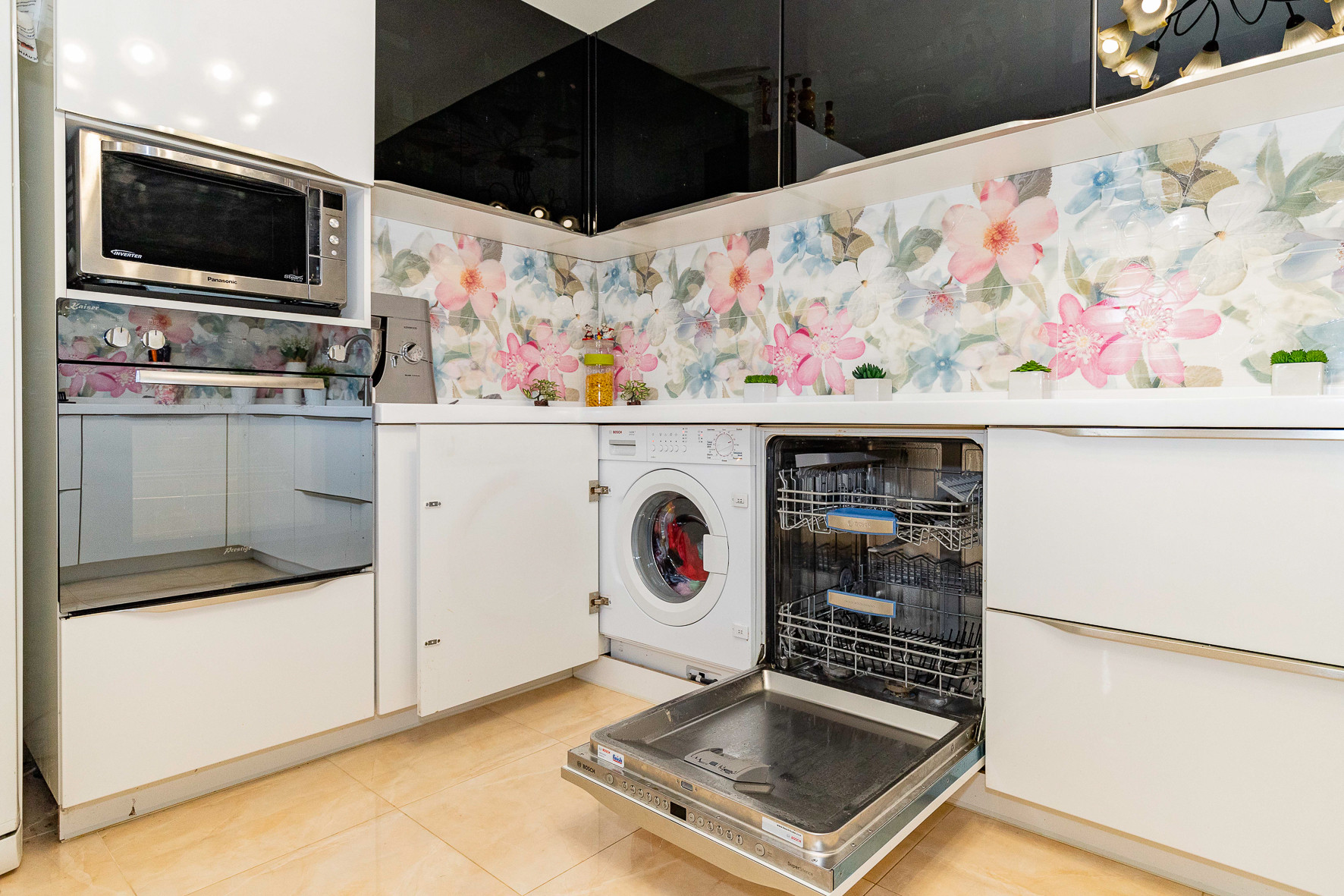 Встроенная мебель на кухню изготовлена на заказ, поставка напрямую из Германии, рабочая зона из каменной столешницы, встроенная бытовая техника ведущих мировых брендов.