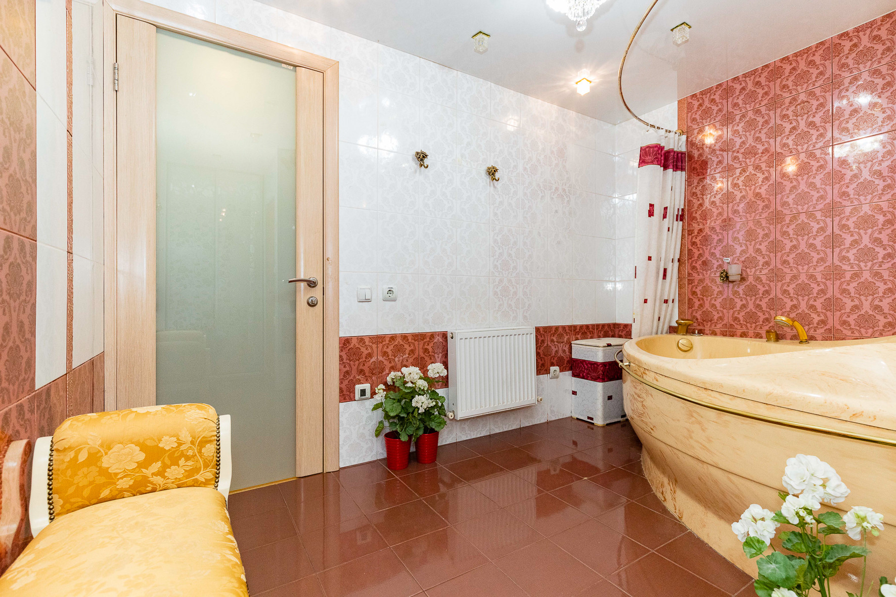 Непосредственно сама ванная выполнена из искусственного камня Staron (новый отделочный материал южнокорейской корпорации SAMSUNG, отличающийся экологичностью, устойчивостью к механическим повреждениям, не имеет аналогов).