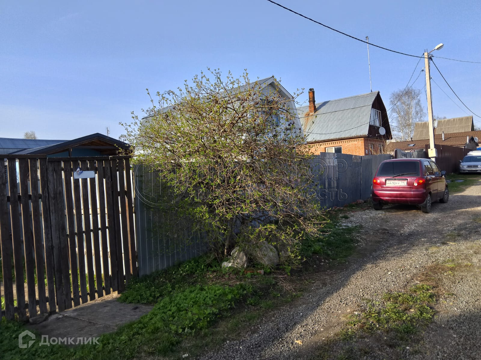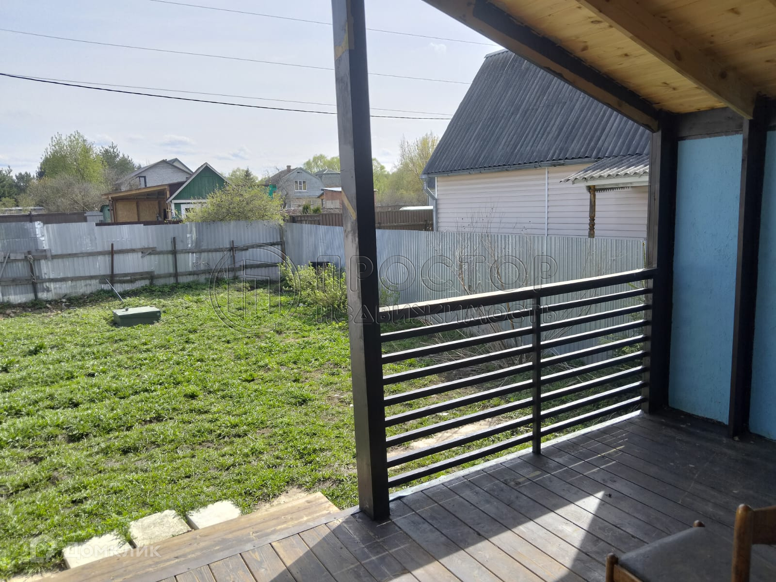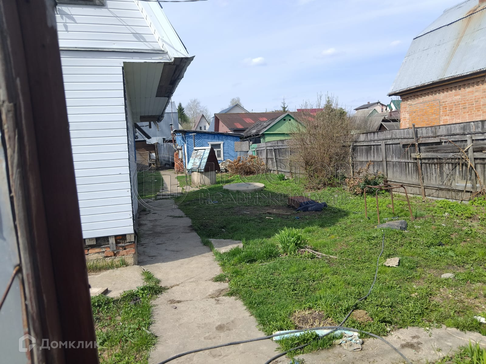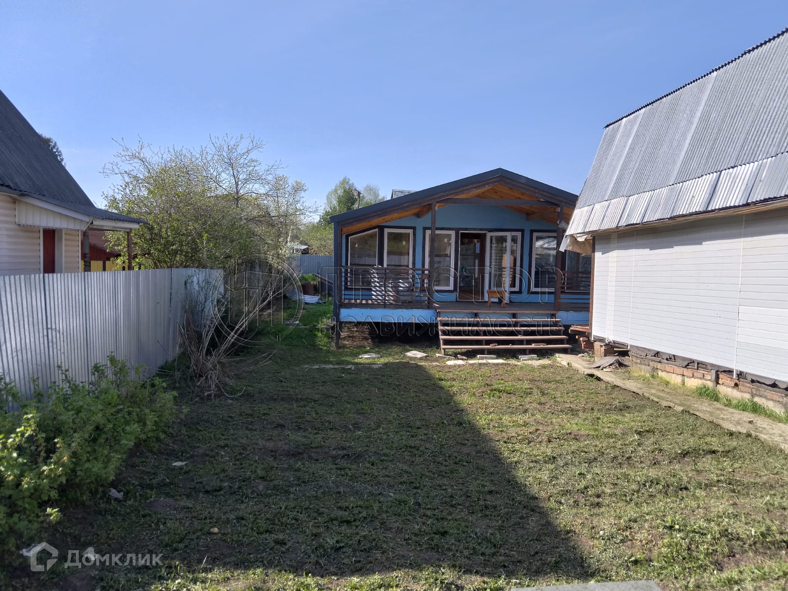 Коммуникации: электричество - 5 кВт, вода - колодец и скважина, канализация - септик (топас). Забор по фасаду из профлиста.