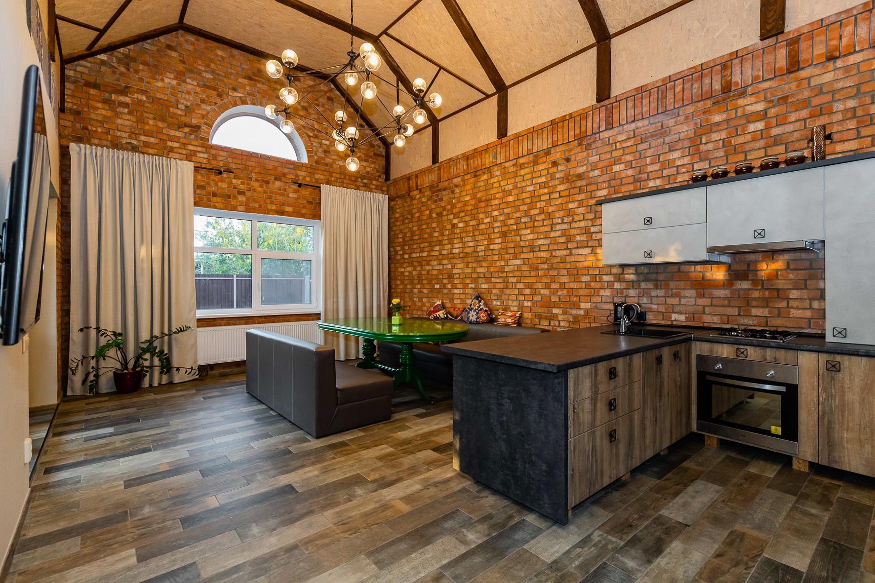 Ремонт выполнен из дорогих, качественных материалов, что позволит Вам наслаждаться его гармоничностью и красотой. Непосредственно сам дом полностью построен из кирпича, без использования блоков и заполняющих материалов. Из панорамных окон открывается прекрасный вид на беседку и фонтан, а лучи заходящего солнца окрашивают зелень сада в золотисто-багряный цвет. Большая зона барбекю и баня из бруса разместят всех гостей. Вы будете гордиться своим домом!