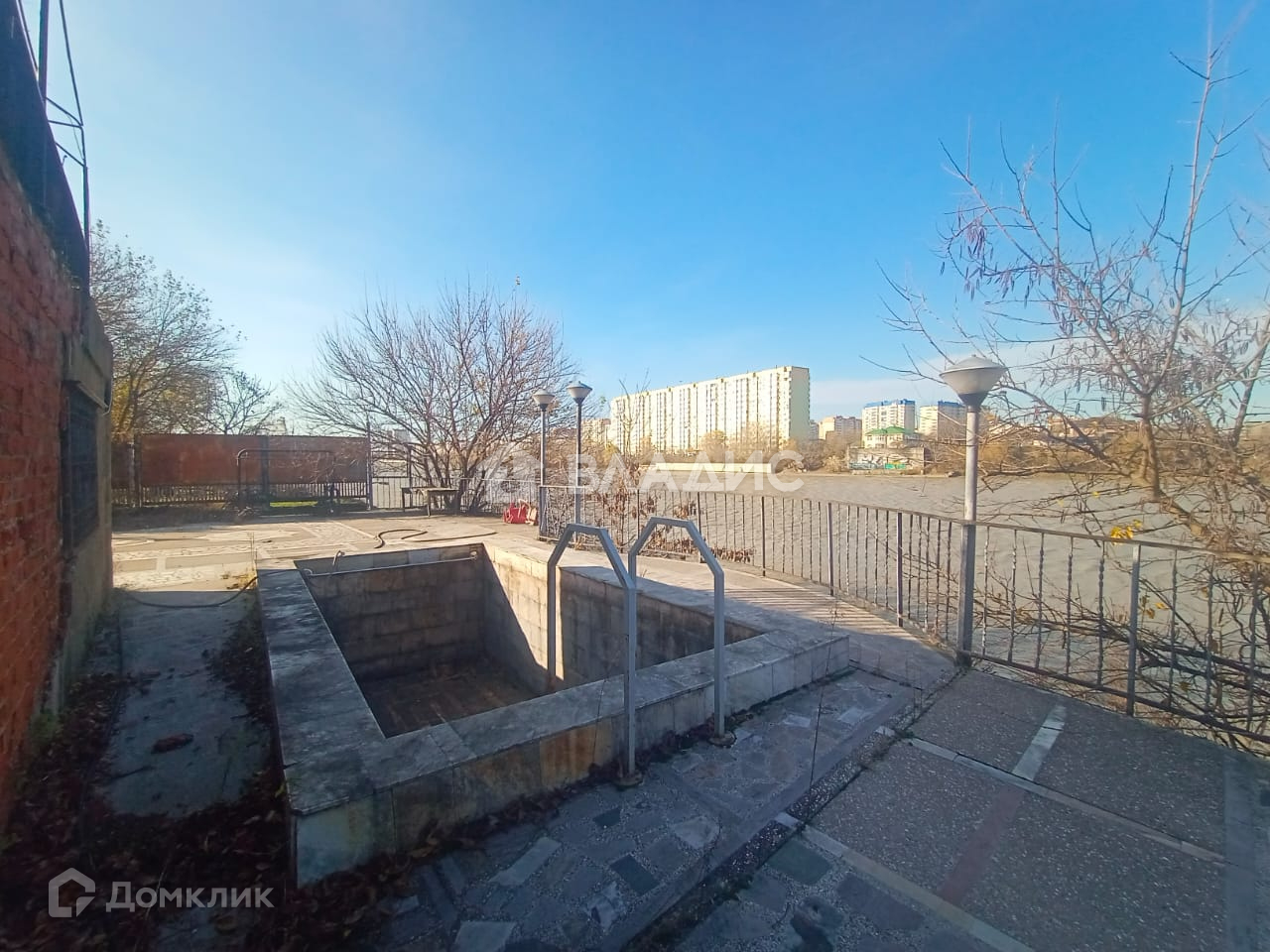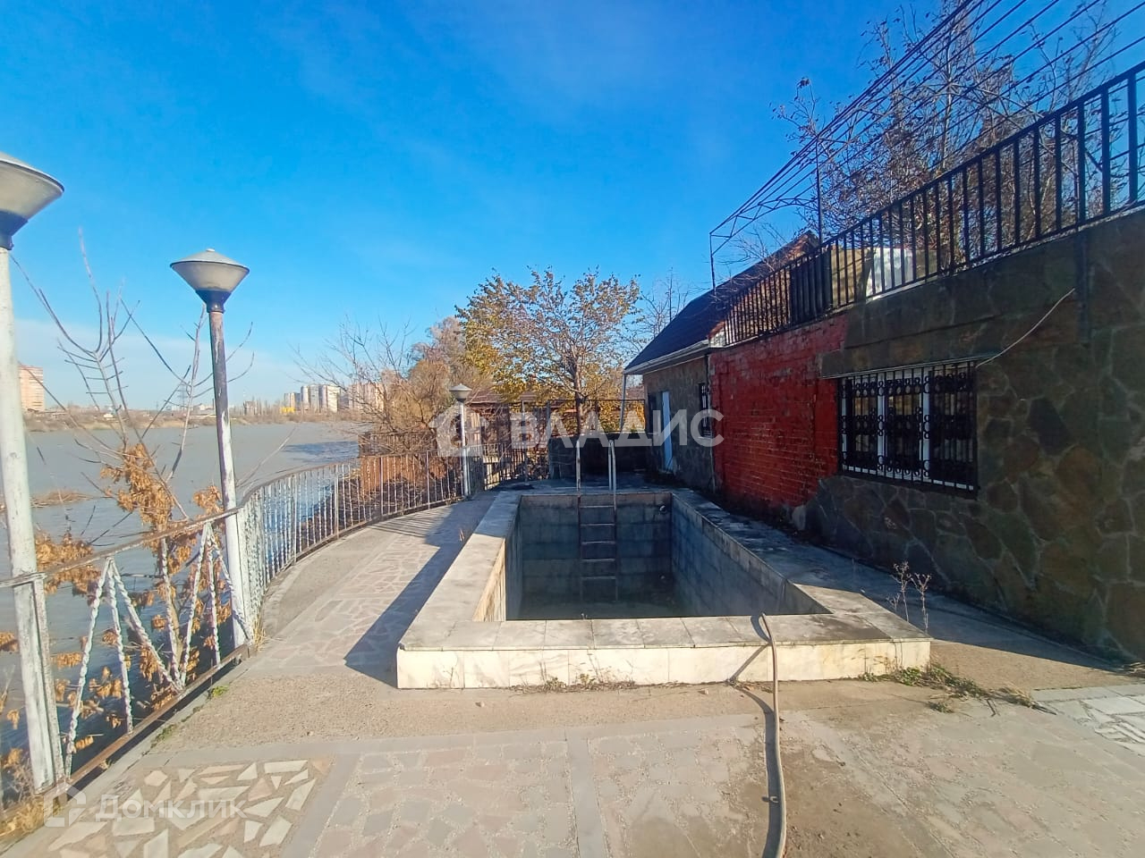 На берегу расположена баня со столовой, бассейн