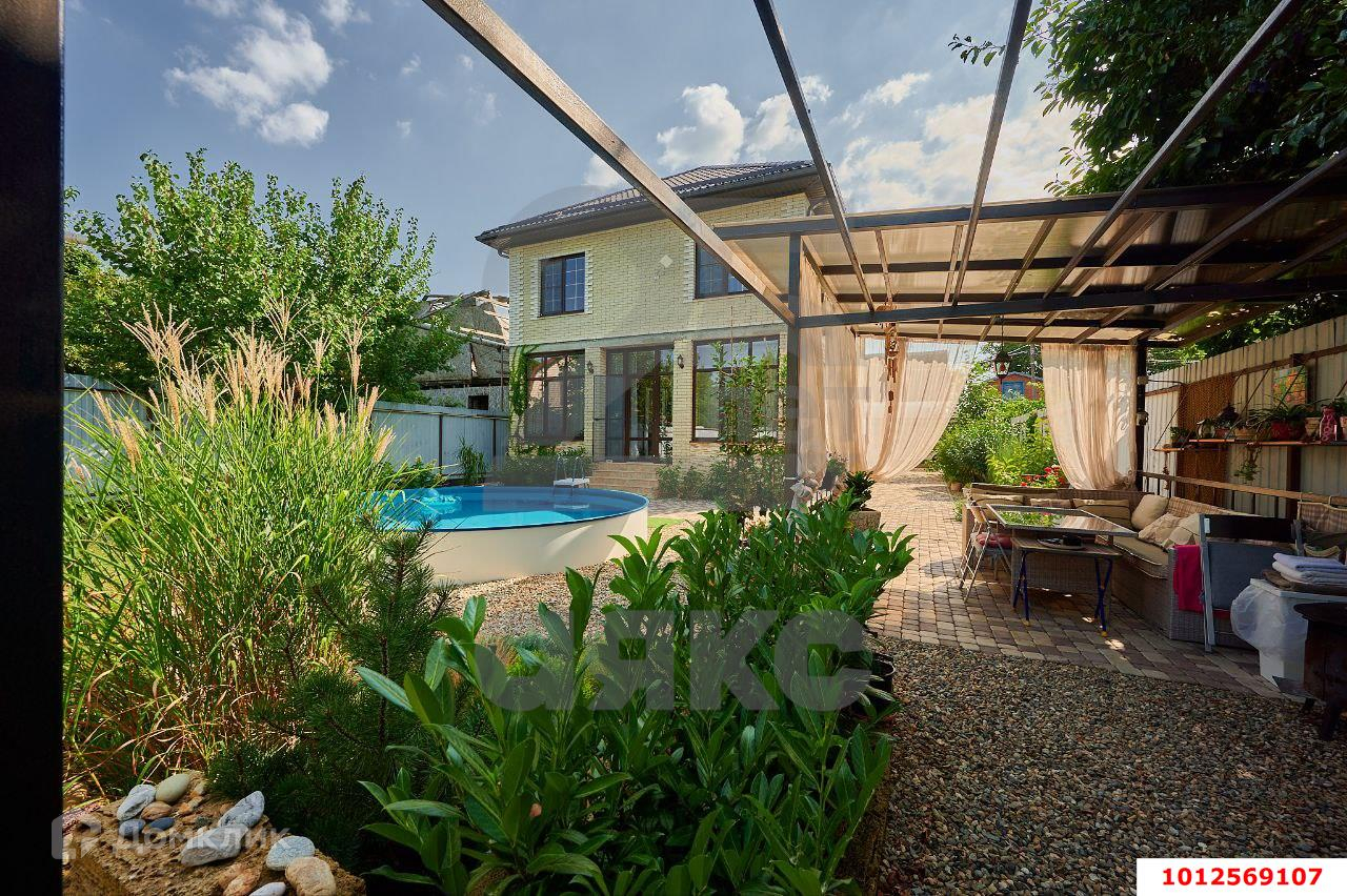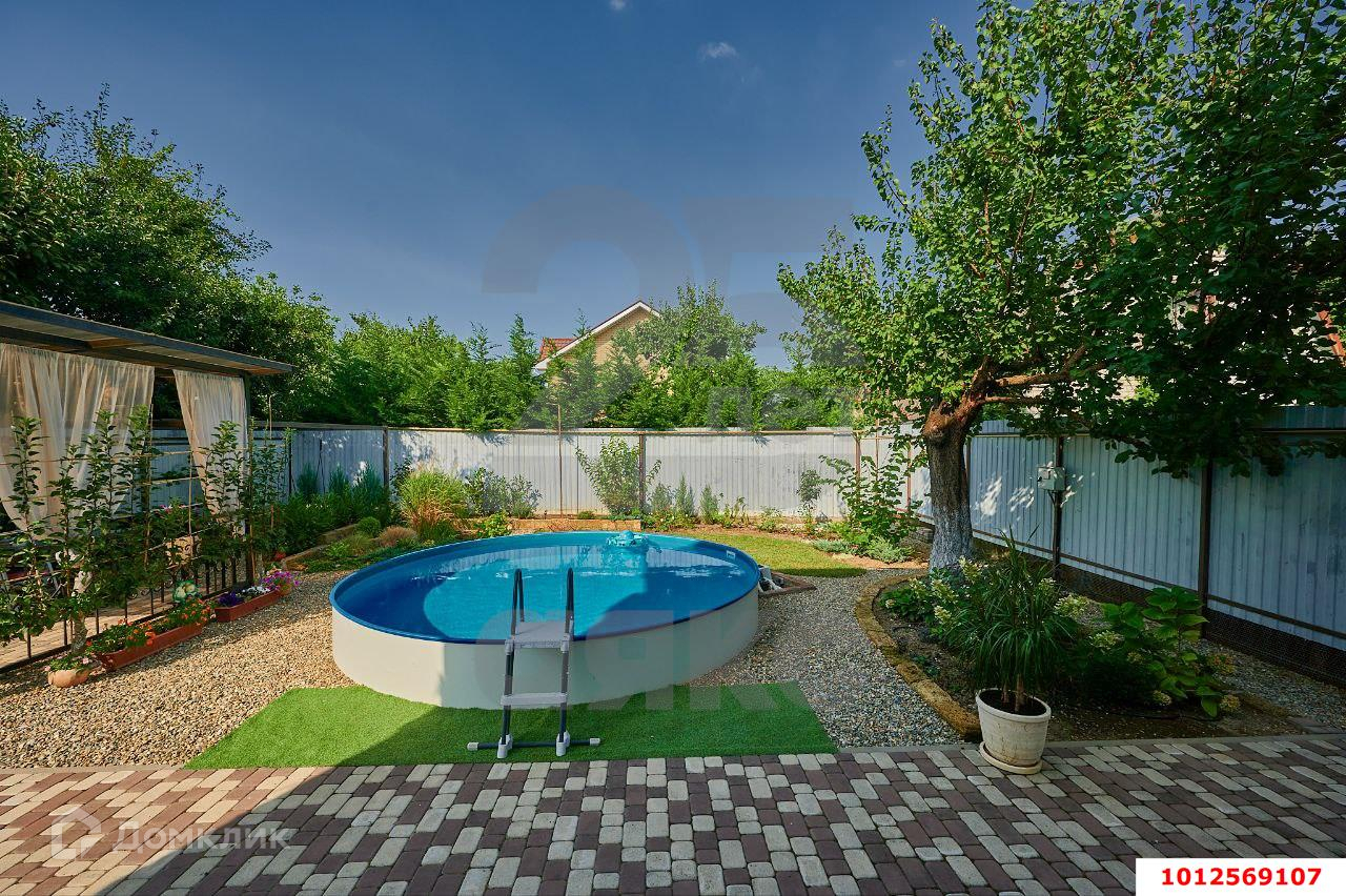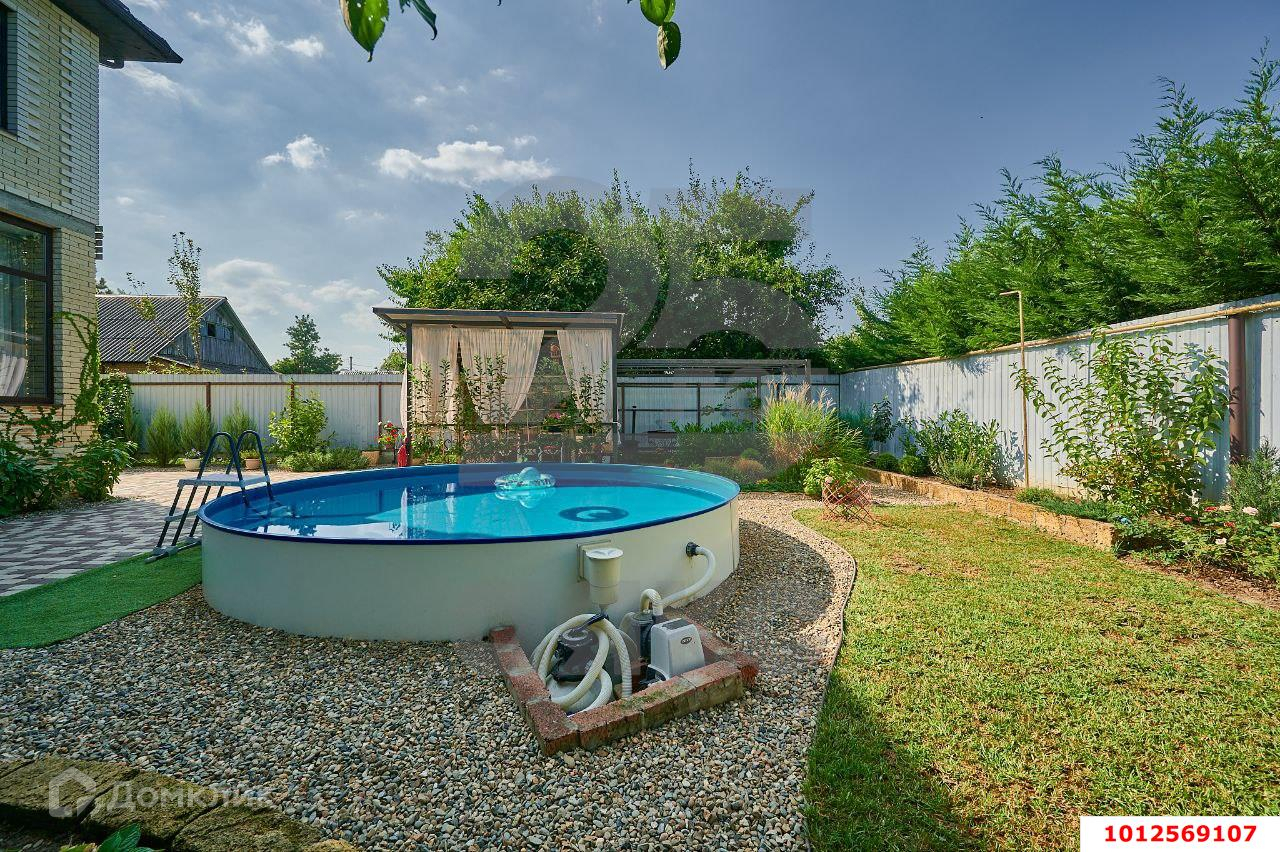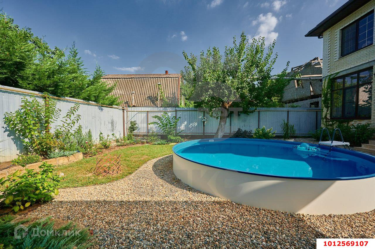 Участок 5 соток: тротуарная плитка, озеленение, зона барбекю, навес для автомобилей, терраса, бассейн (круглый 5 м. глубина 1.2 м., объем 20 куб. м., оснащен системой фильтрации, очистки, долив - при необходимости можно установить систему подогрева. Бассейн установлен в грунт - не требует полного сливания в зимний сезон). Обслуживается компанией.