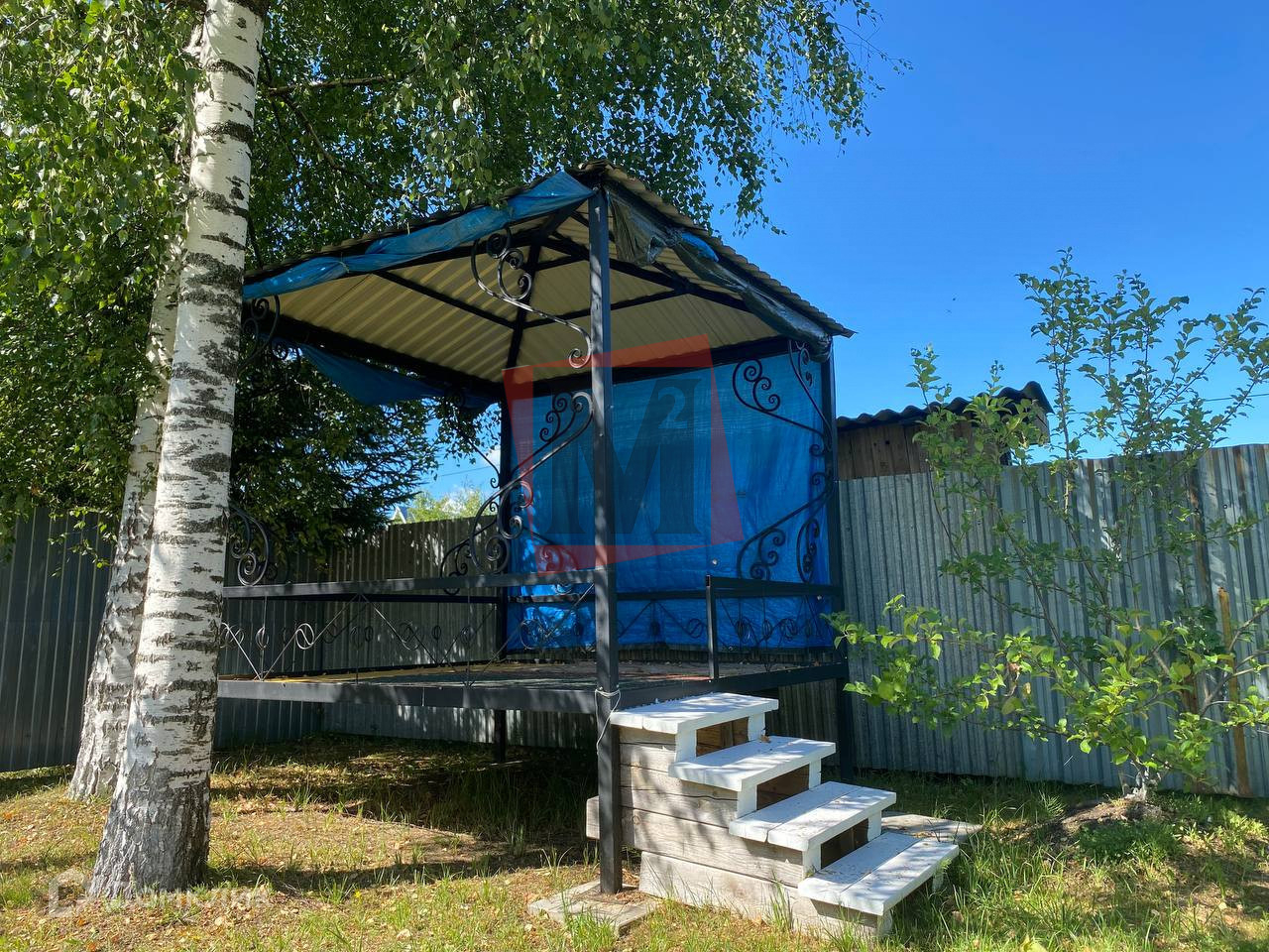 Для отдыха на улице есть топчан, сваренный из кованного железа. Есть зона под мангал и стол для большой компании. Организована зона для детского досуга (песочница и качели)