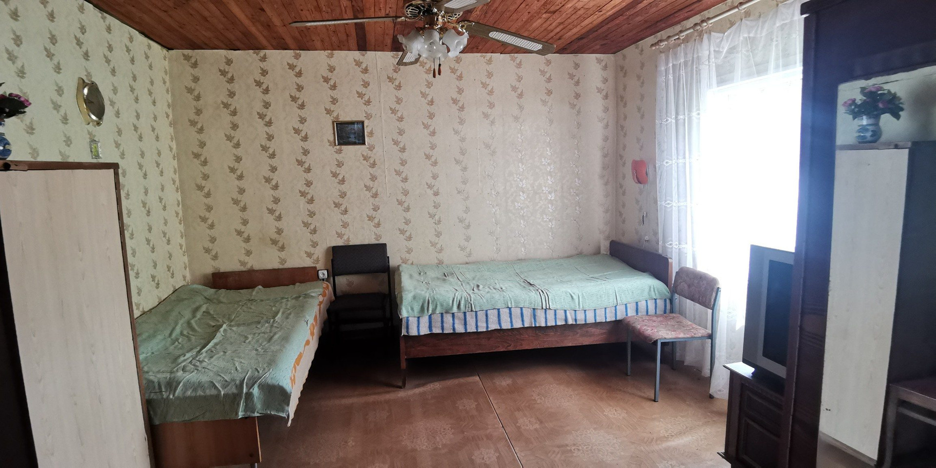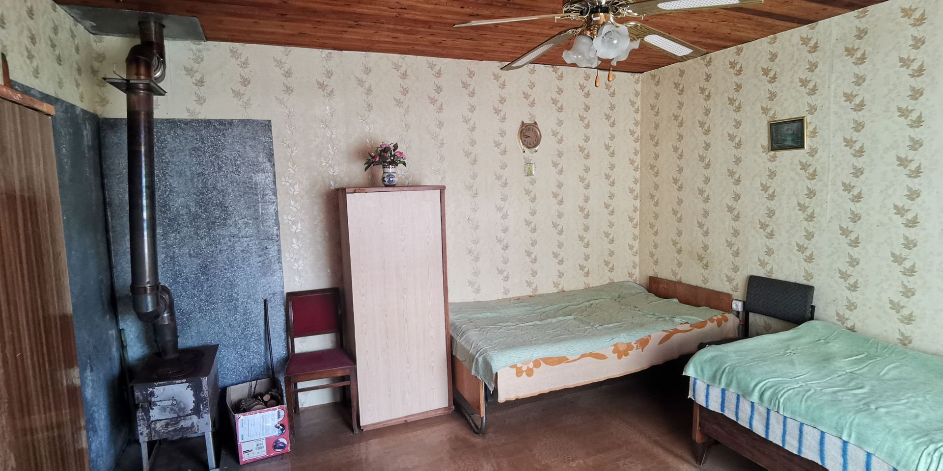 На 2-ом этаже - комната и две кладовые.