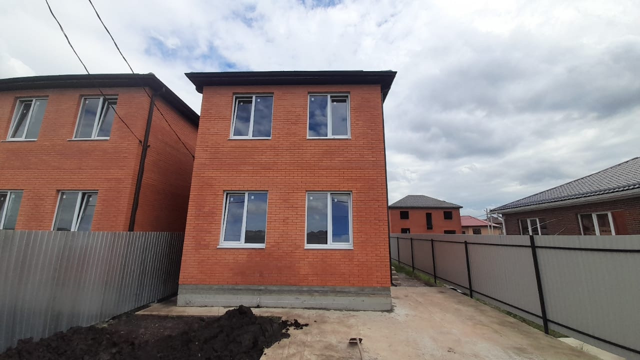 Новый дом, построен из кирпича, забор металопрофиль, любой вид расчета.
