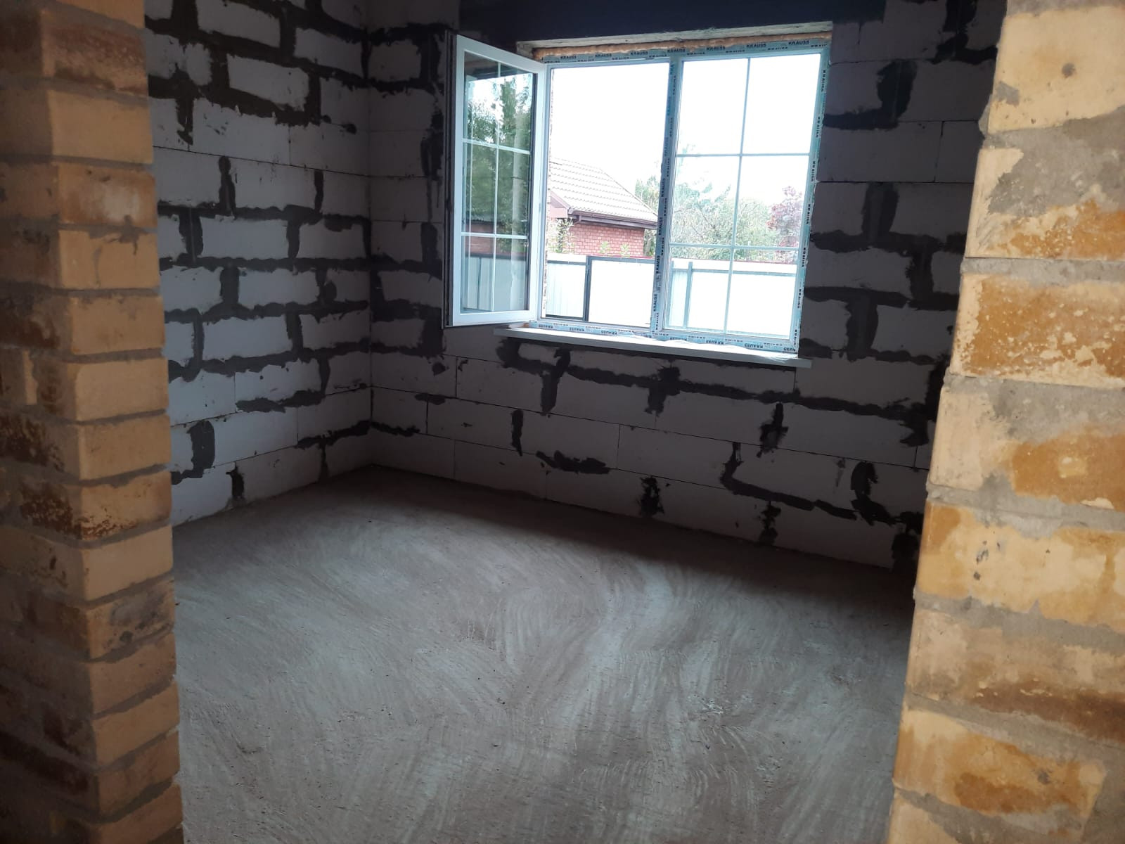 Отличный дом из 3-х спален и  кухней-гостиной. Снаружи стены из кирпича, внутри- газоблок; между ними утеплитель 5 см.