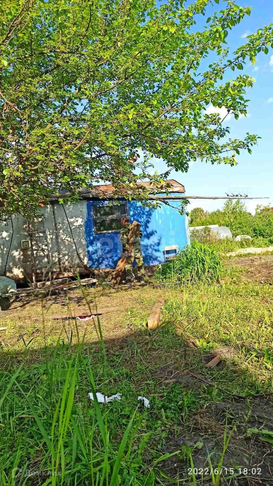 В качестве домика используется вагончик( поднят на сани, очень удобно для перемещения по участку) . Пригоден для ночёвок до поздней осени. Помещения отдельны друг от друга(кухня и комната)