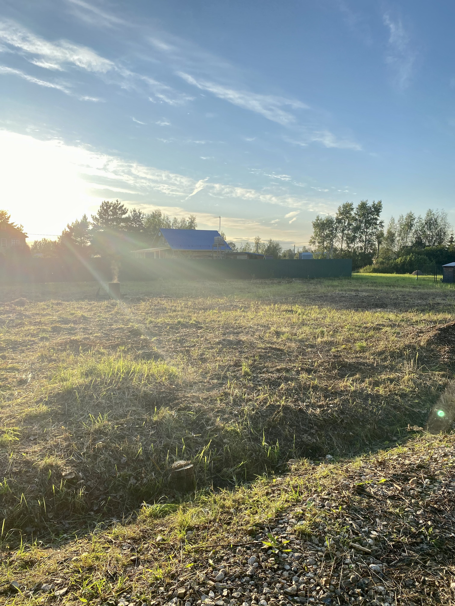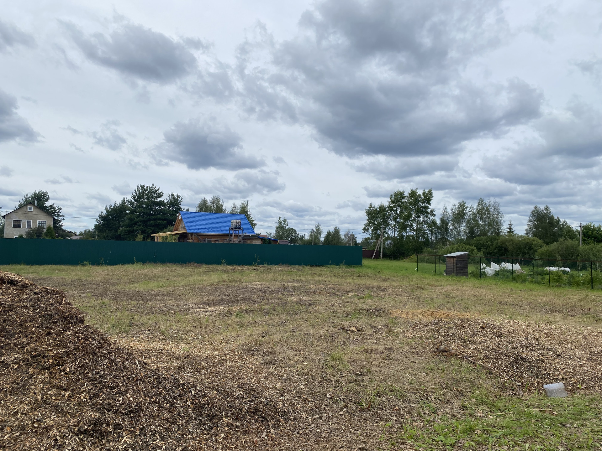 Участок ровный, на нем проведена работа по очистке от деревьев, поросли, кустарников и мелколесья, но есть пни.