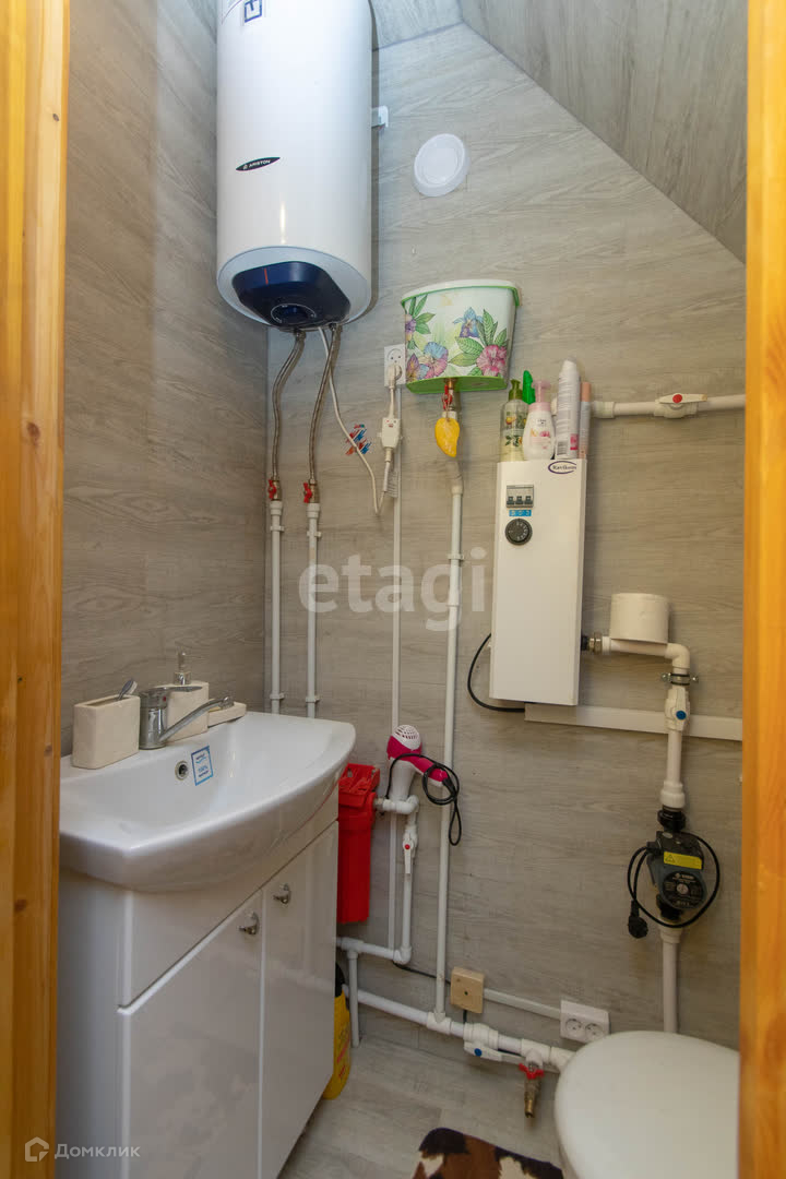 В доме установлен электрокотел с радиаторами отопления и смонтирован теплый пол на первом этаже. Подведено электричество 380В. В качестве источника водоснабжения используется скважина в доме. До конца года сделают централизованное водоснабжение. Также на участке расположен колодец - из него можно воспользоваться водой для полива. Есть септик из железобетонных колец.