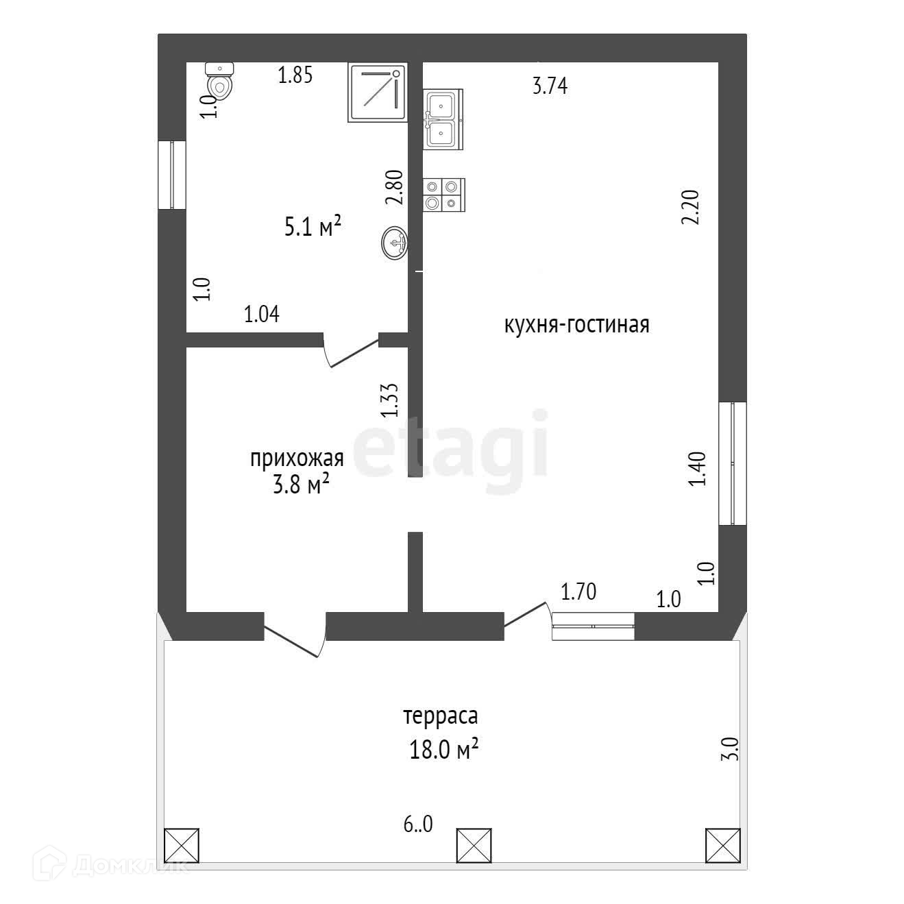 Продается современный одно этажный дом общей площадью 36 кв.м + терраса 18 кв.м.