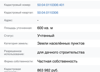 Продам участок 6 сот. № 424 СНТ Земля. в собственности более 25 лет. 50:11:0050102:0443 |