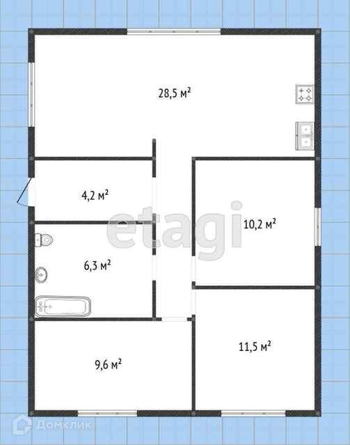 Продается дом 65м² на 4сот. 2 комнаты по 10,2м², просторная кухня-гостиная с двумя окнами 19,5м², с/у, гардеробная. Стены ошпаклеваны, сделана разводка электрики, вода и канализация заведены. Короед по фасаду, крыша металлочерепица, остекление качественное. Септик 8м³, скважина 27м, электричество 5 кВт.