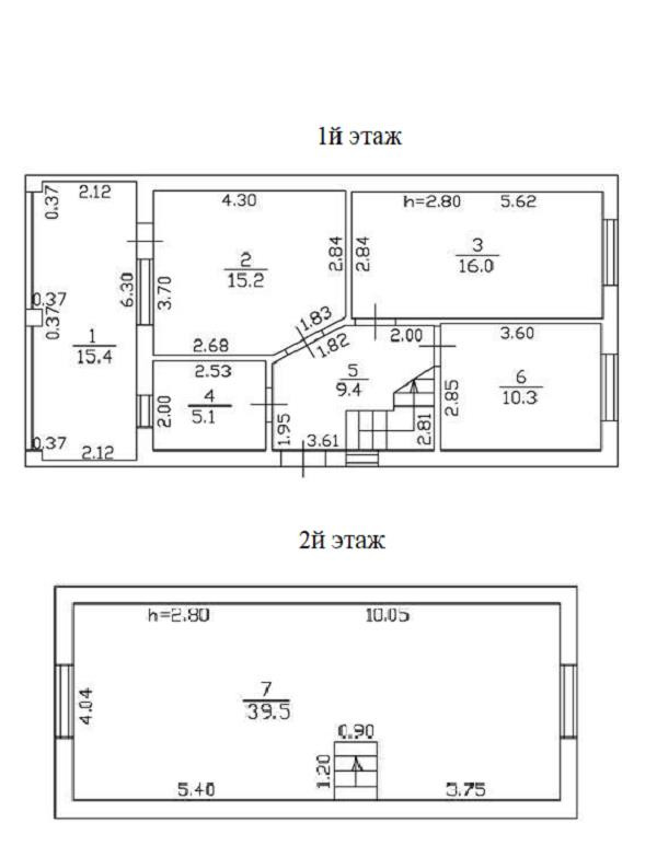 На втором этаже комната 39,5 кв.м. свободной планировки, с окнами на две стороны, где можно комфортно разместить две спальни.