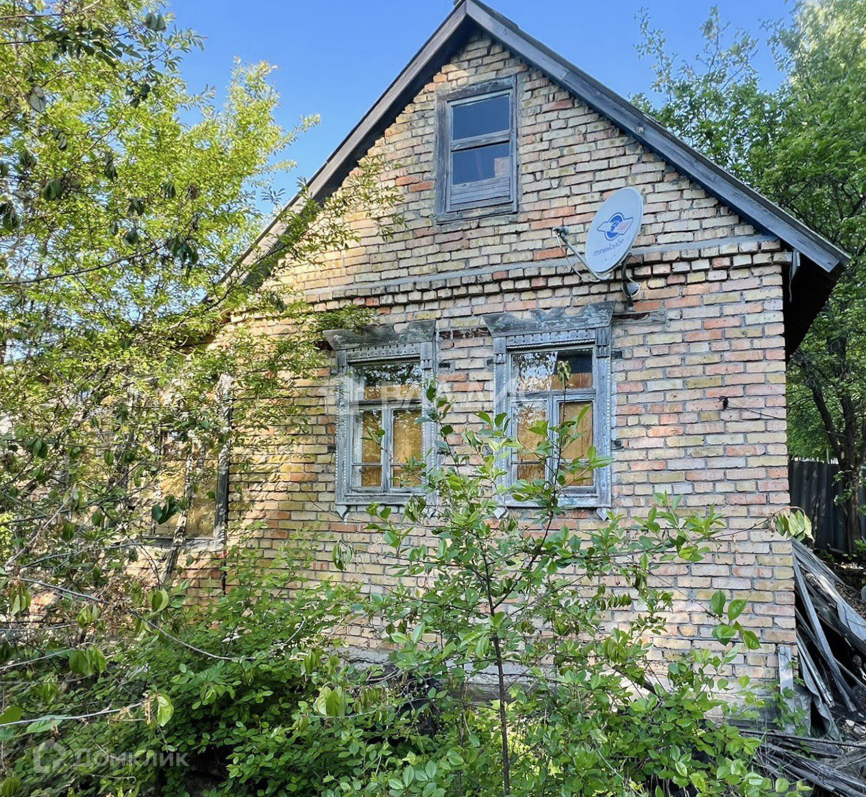 На  участке одноэтажный кирпичный дом с печным отоплением, есть спутниковое телевиденье Триколор и уверенный прием LTE.
