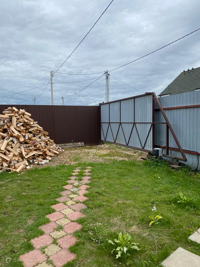 Участок по периметру огорожен заборов из профлиста с металлическими столбами, автоматические ворота с дистанционным управлением.