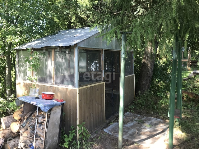 Дом щитовой , не гнилой , крыша не течет, есть теплица, беседка,металлический гараж.