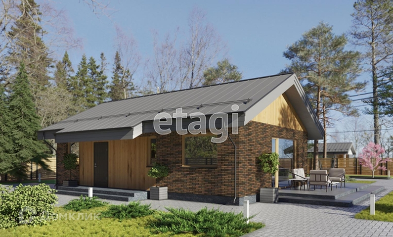 На участке можно очень быстро построить небольшой, но очень уютный дом площадью 69 квадратных метров (как на рисунке). Вам нужно будет только посадить деревья и привозить сюда детей!