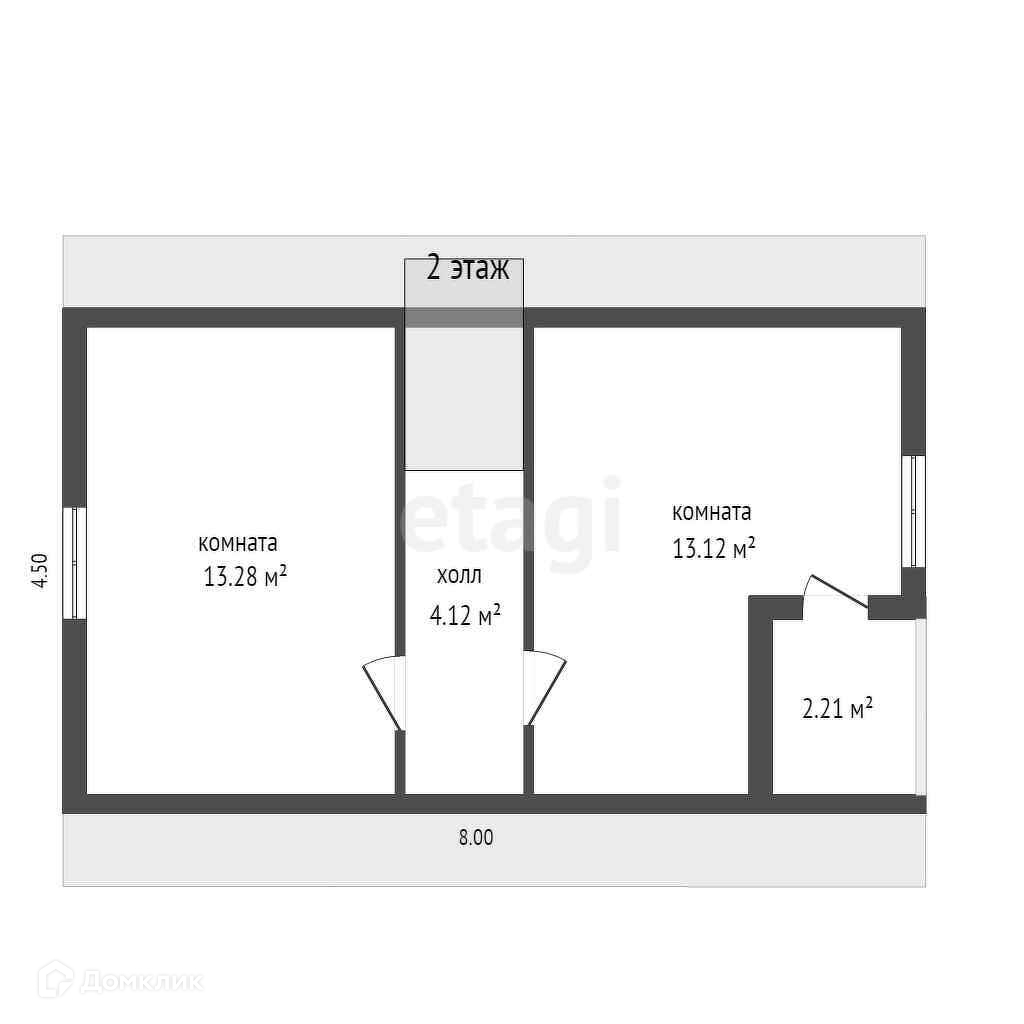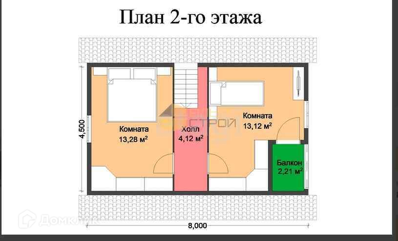 2 этаж- 2 большие изолированные комнаты + холл 8,5м2.