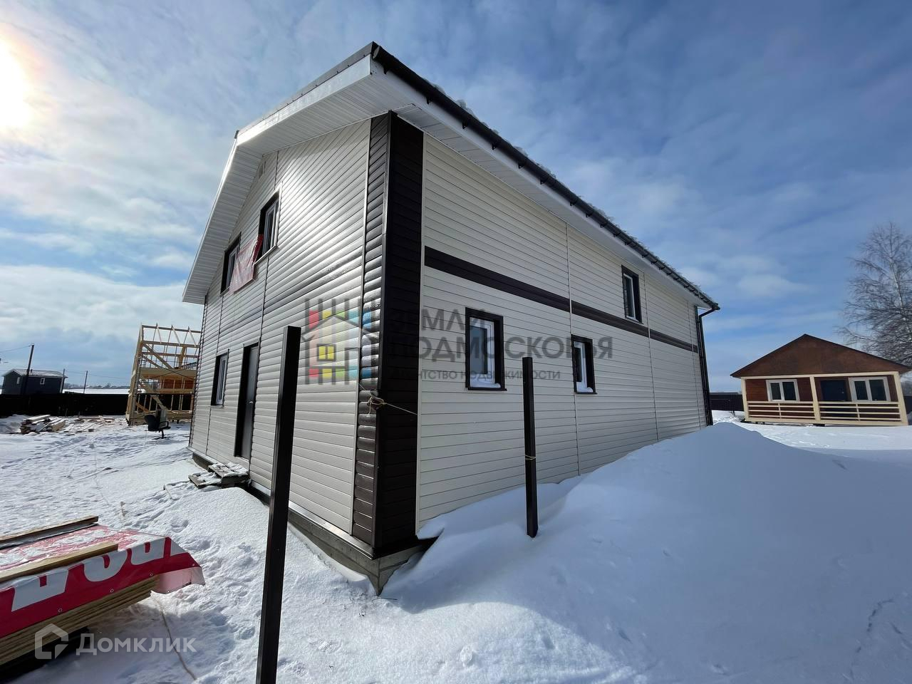 Продается каркасный дом 212 кв.м. на участке 8 соток в КП Дмитроград, Дмитровского района, Московская область. Дом построен по технологии каркас 200 мм + утеплитель 50 мм и обшит сайдингом, фундамент ленточный. Расположен он на участке 8 соток, участок ровный правильной прямоугольной формы. На участке помимо дома расположен летний дом, хозблок и туалет. По периметру участок огорожен забором из профлиста. Коммуникации на участке: электричество 15 кВт, скважина 87 м. Дом без внутренней отделки. Дом подходит для круглогодичного проживания - вся необходимая инфраструктура (школа, детский сад, поликлиника, магазины, аптеки, фитнес-клубы) расположена в 8 км от кп.