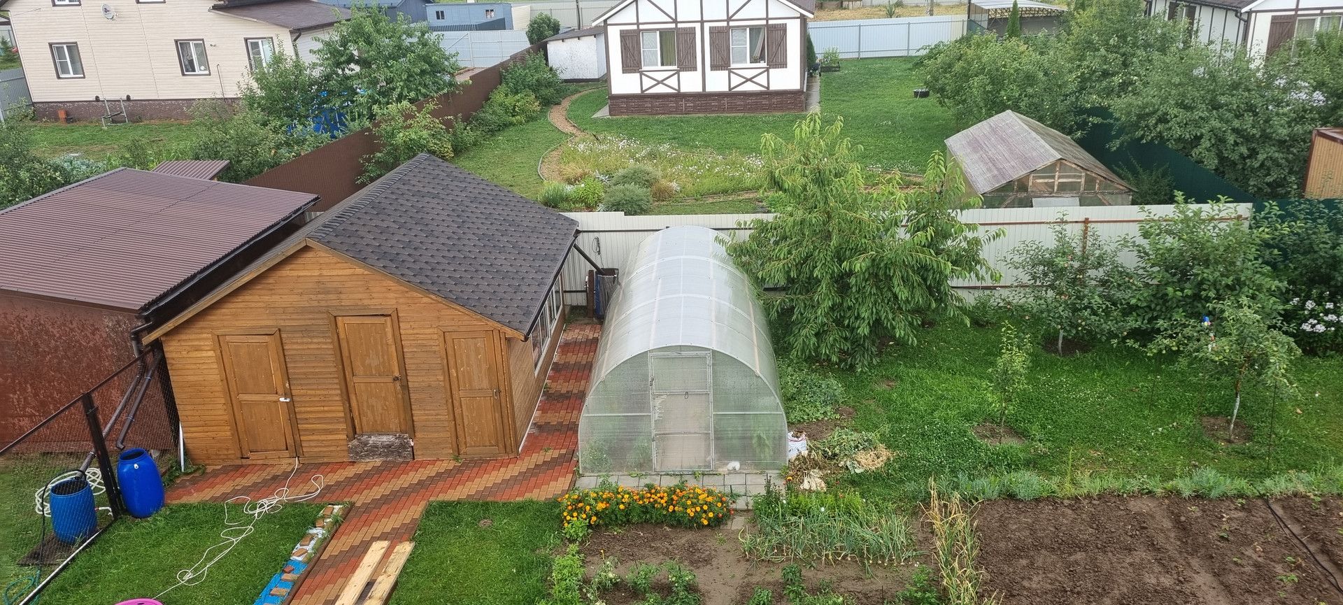 Красивые кованные ворота, чудесно оформлена въездная группа. С огромной любовью и профессионализмом построенный дом, полностью готовый для проживания. Все этапы строительства запечатлены на видео. Высокие потолки, грамотно спланированное пространство, удобная лестница, большие окна - все это неоспоримые плюсы, а если к ним добавить освоенный участок с чудным огородом и теплицей, хозблок, отдельностоящую баньку с котельной, то получается идеальный вариант для комфортного проживания.