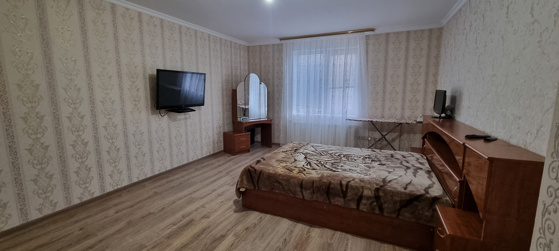 На первом этаже просторная спальня, гостиная, переходящая в кухню-столовую, санузел, постирочная, летняя кухня. На втором этаже три спальни, холл, большой санузел с ванной.