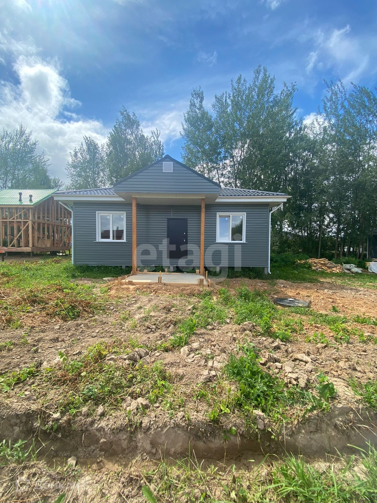 Участок ровный, на участке 1 этажный дом для круглогодичного проживания. Прихожая, большой коридор и совмещенный сан.узел.