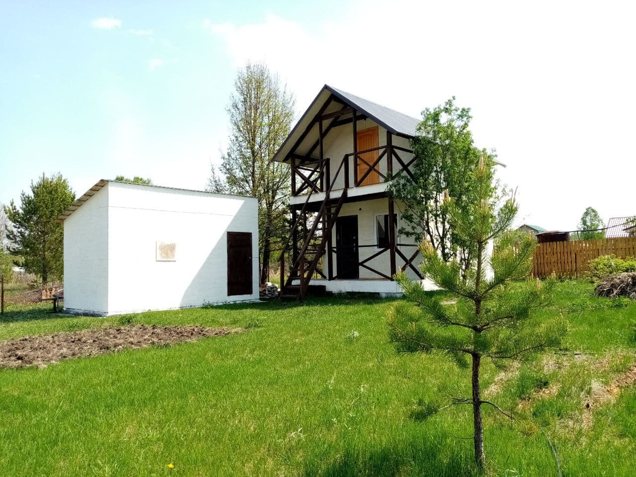 Дача в стиле шале для семейного летнего отдыха в СНТ Котельщик в тихом уютном месте. Рядом с. Баюновские Ключи и с. Покровка. Экологически чистый район. Новый 2-этажный дом с террасой и балконом, отдельный вход на второй этаж. Новая большая баня и туалет, коммуникации - свет и вода. Дом каркасный построен по канадской технологии, очень тёплый, пластиковые окна, металлическая дверь. Площадь дома 48 кв. м, бани 12 кв. м. Постройки 2020-2021 годов. Плодоносящий сад, деревья, газон, огород. Имеется большая площадь для парковки машин. Рядом лес и река Лосиха. В садоводстве 2 продуктовых магазина. Охрана круглый год.