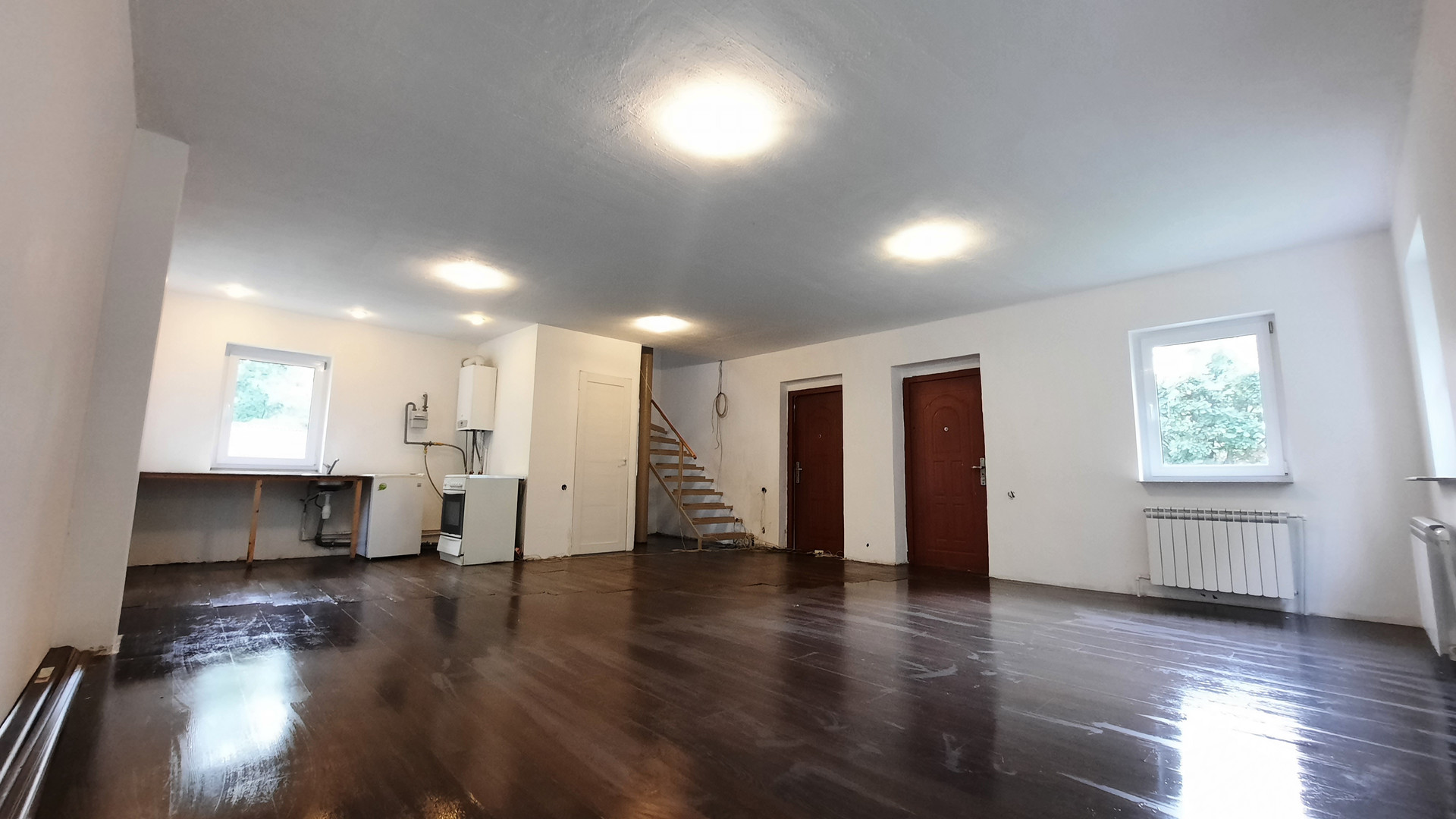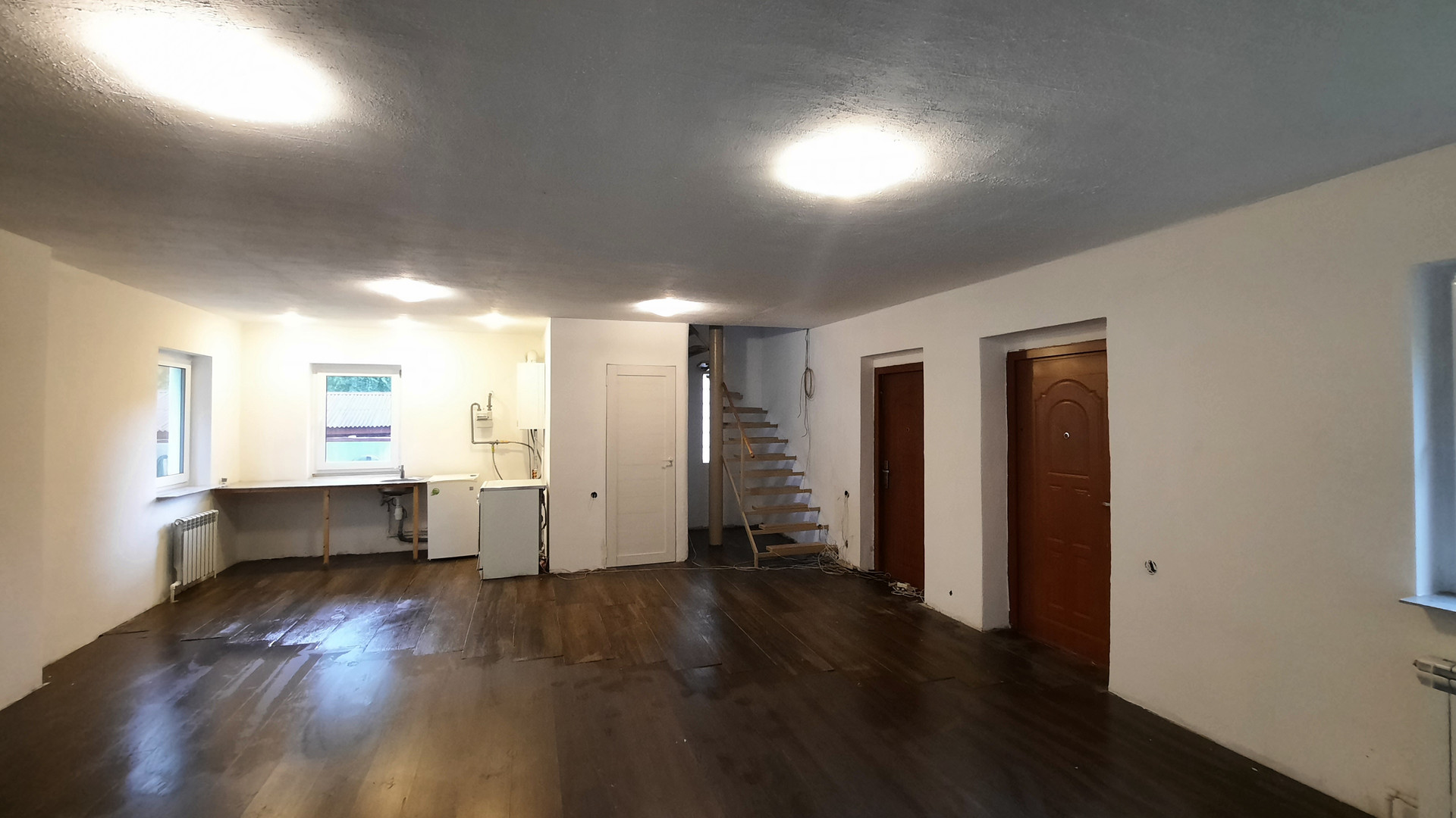 Дом построен по индивидуальному проекту из пеноблока с внешним утеплением 10см из пенопласта и оштукатурен, пол 1-го и 2-го этажа – монолит, пластиковые окна из немецкого профиля Salamander. Свободная планировка этажей. На 1-м – гостиная, кухня и с/у, теплый пол. 2-й этаж – 2 спальни, общий зал, ванная комната, 3-й этаж – свободное пространство.