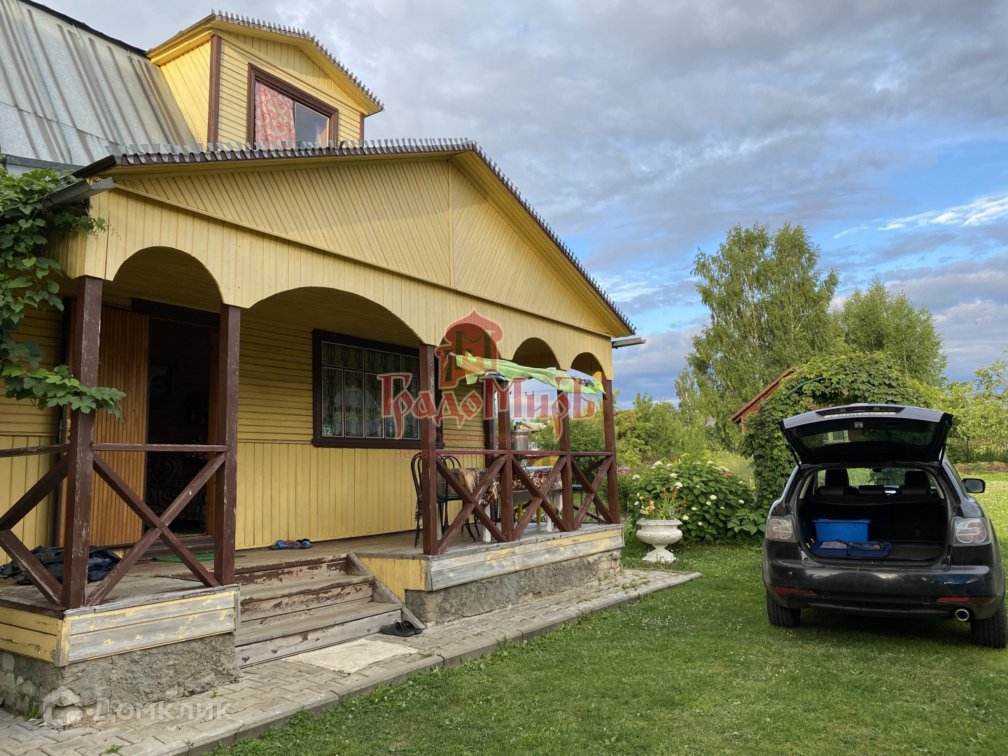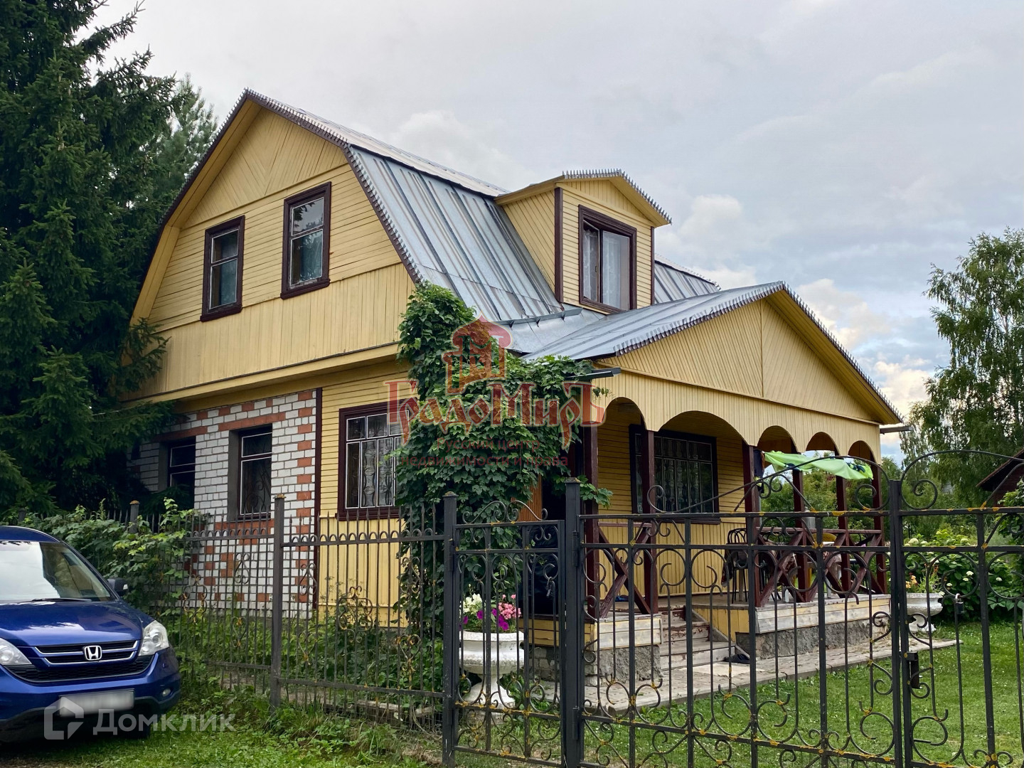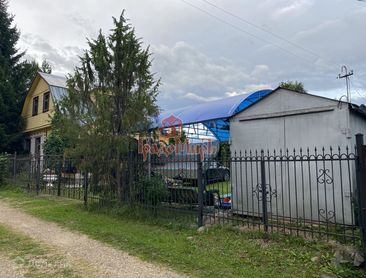 УЧАСТОК 10 соток, ровный, ухоженный. Огорожен металлическим забором по периметру. Есть калитка и 2 пары ворот (на участок и в гараж). По сторонам участка деликатно расположены взрослые ели, березы, декоративные кустарники. Из плодовых - яблоня, груша, слива, вишня,  а также 4 вида смородины. Участок отличается плодородной землей, так как в течение 20 лет он удобрялся торфом.