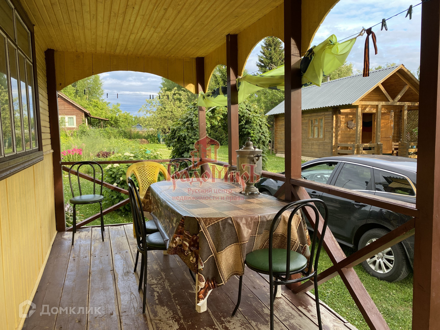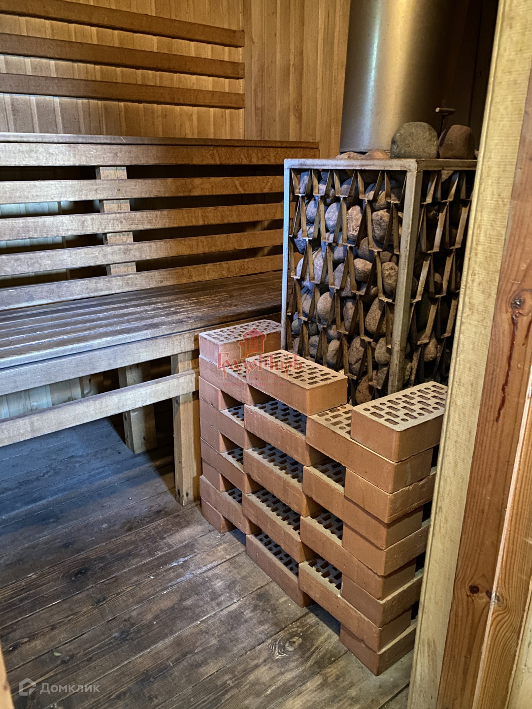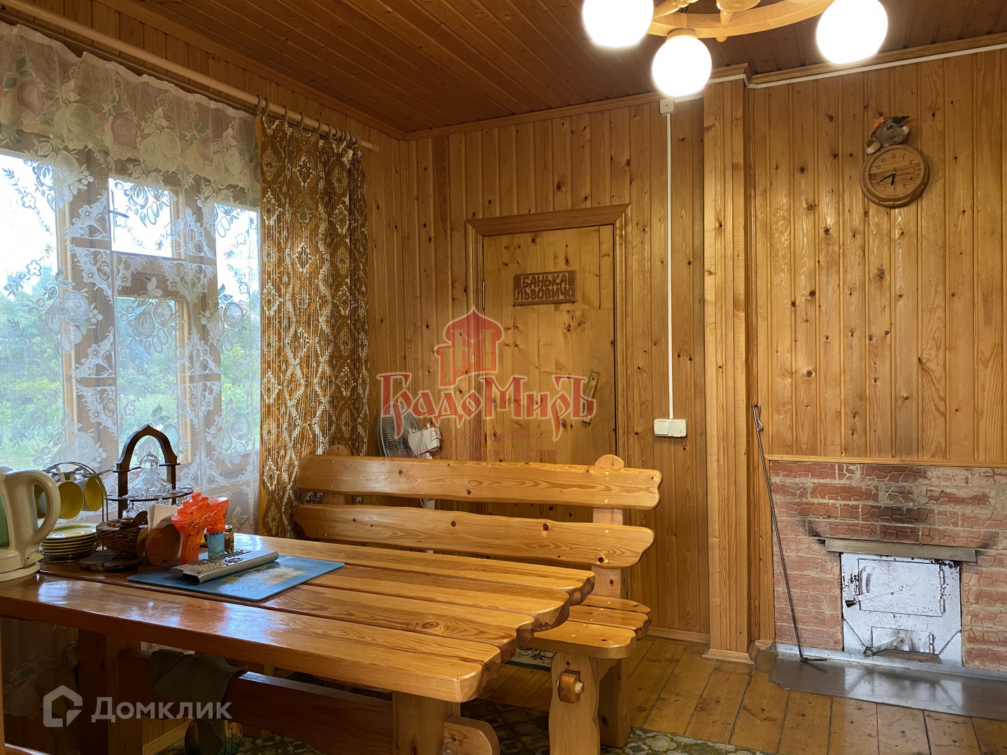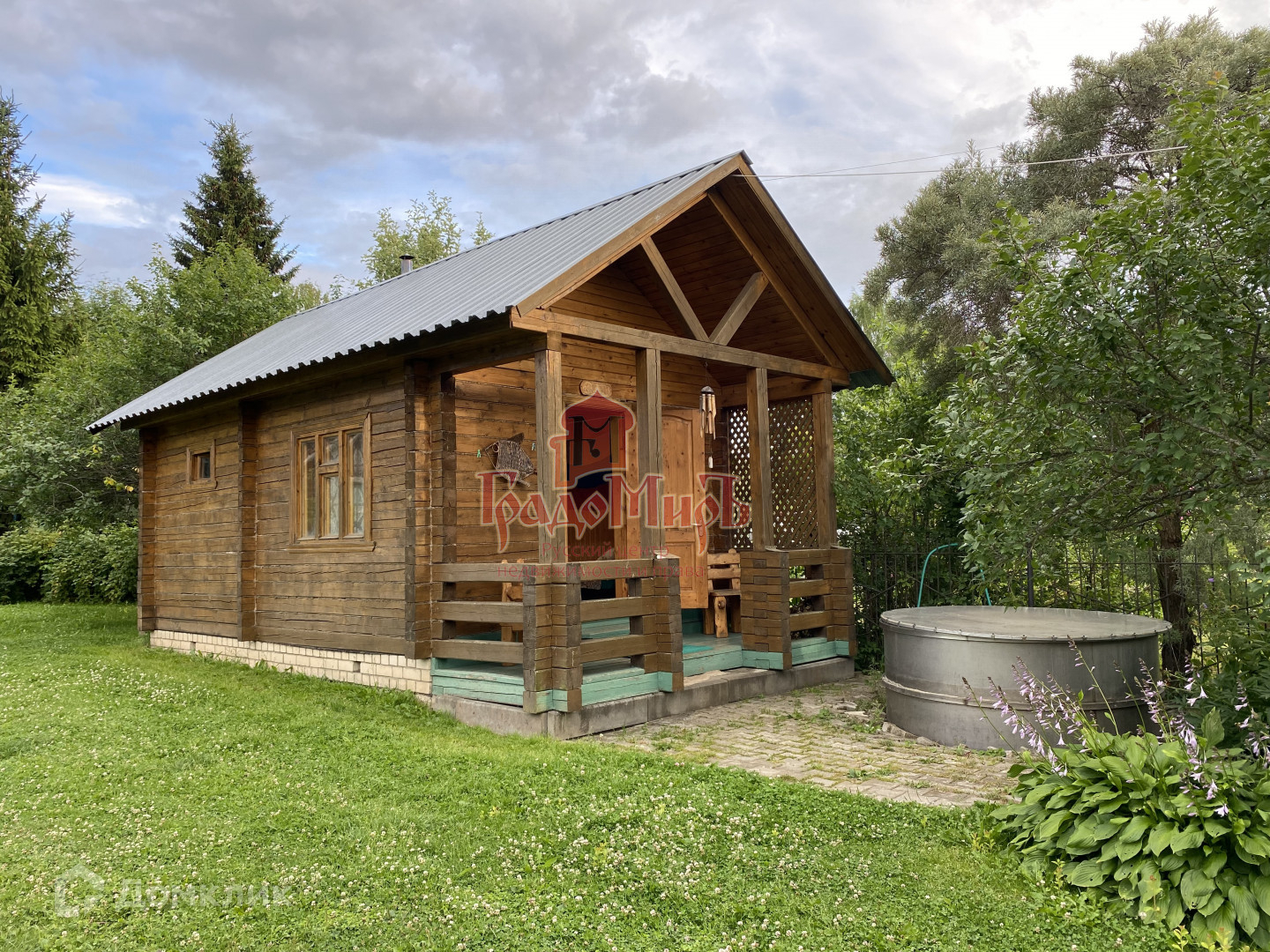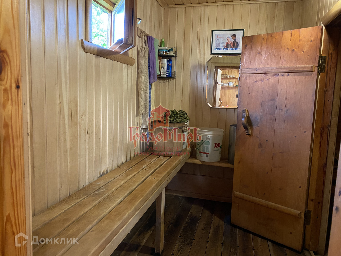 БАНЯ построена из бруса 150х150 мм, обшита липой. Вся мебель остается новому хозяину! Около бани установлена большая купель из нержавеющей стали.
