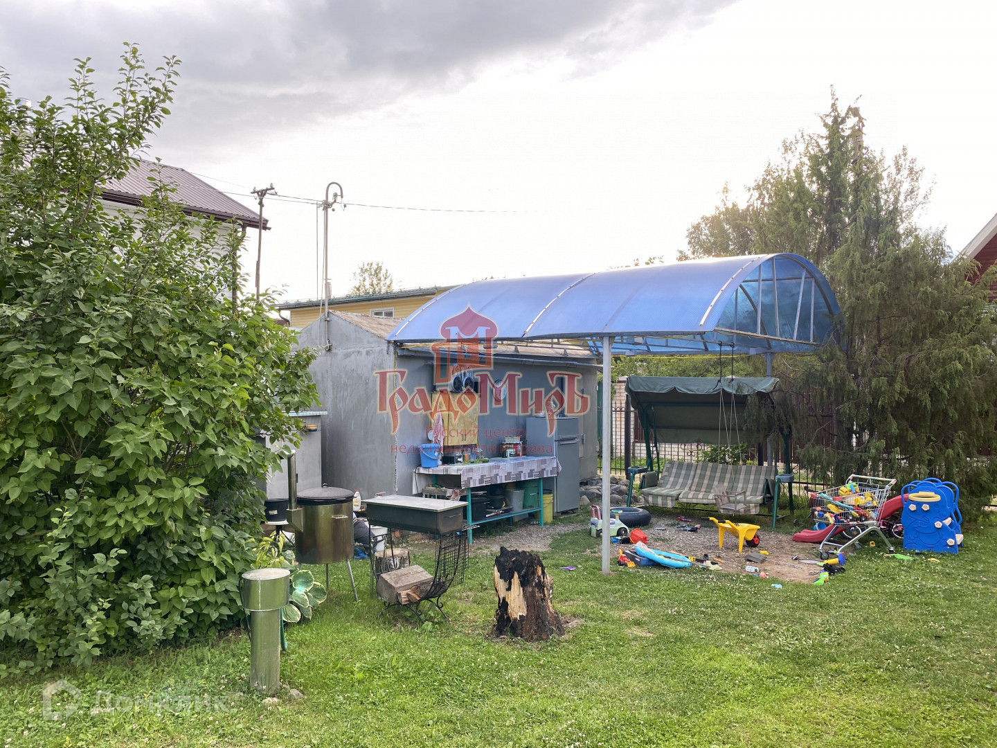 ДРУГИЕ СТРОЕНИЯ: металлические гараж-хозблок, навес (мангальная зона), душевая, туалет.