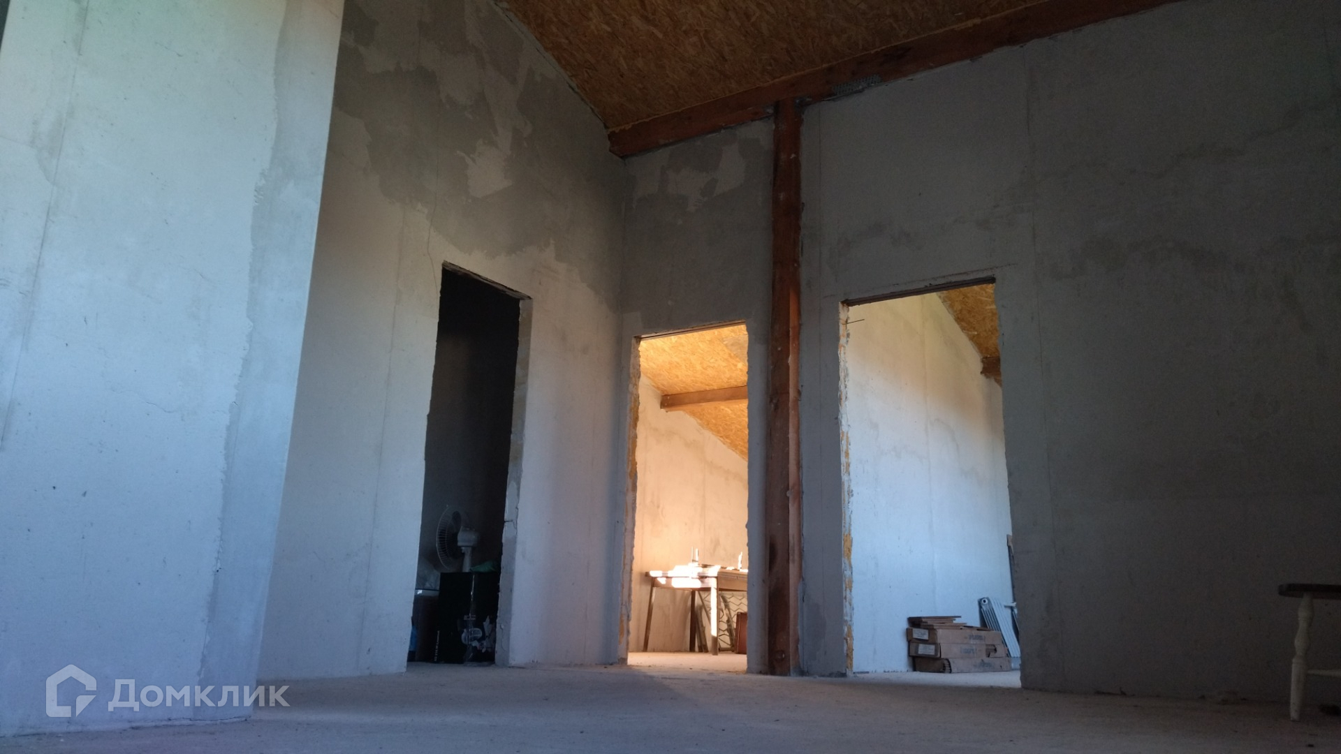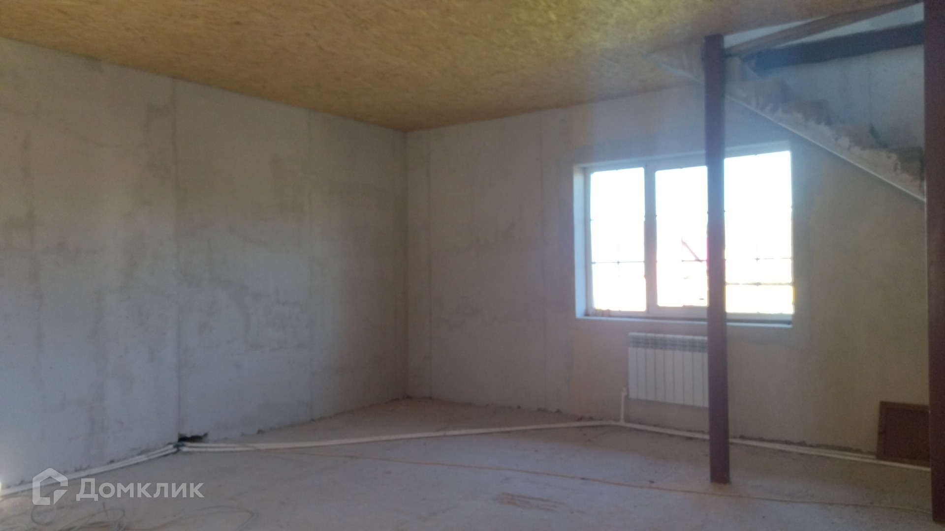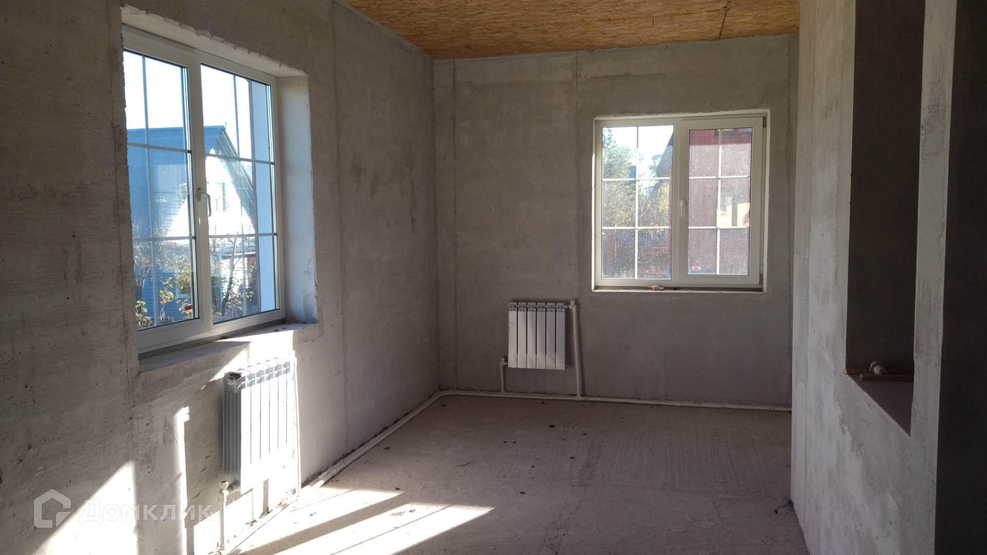 Дом построен из пеноблоков, утеплен по фасаду, выполнена наружняя отделка, установлены окна с двухкамерными стеклопакетами. На первом этаже  - гостиная, кухня, санузел, , бойлерная, гараж на 2 автомобиля. На втором этаже 4 изолированные комнаты и помещение под санузел. Комнаты второго этажа имеют выход на балконы по обеим сторонам дома. Межэтажная лестница из бетона. Установлен пеллетный котел и радиаторы отопления. Участок ровный, крайний к лесу.