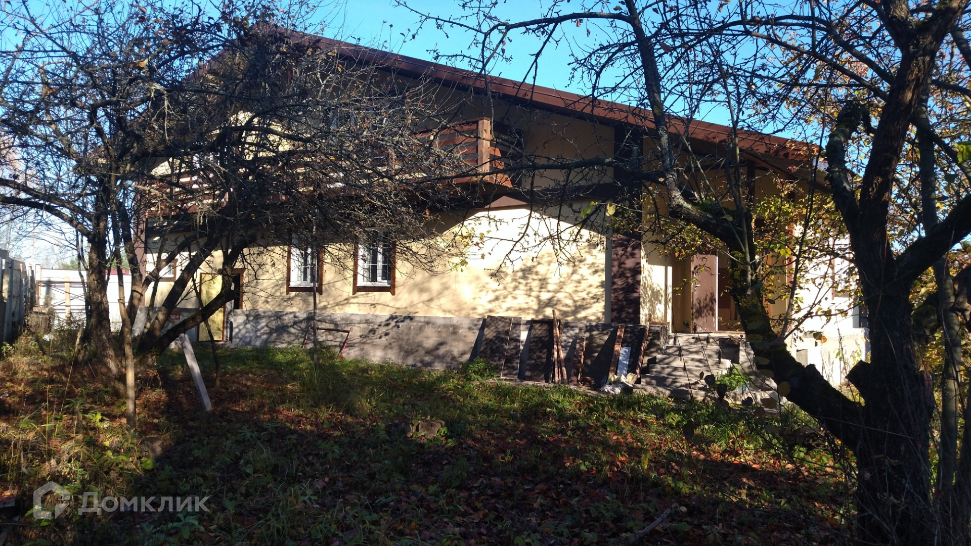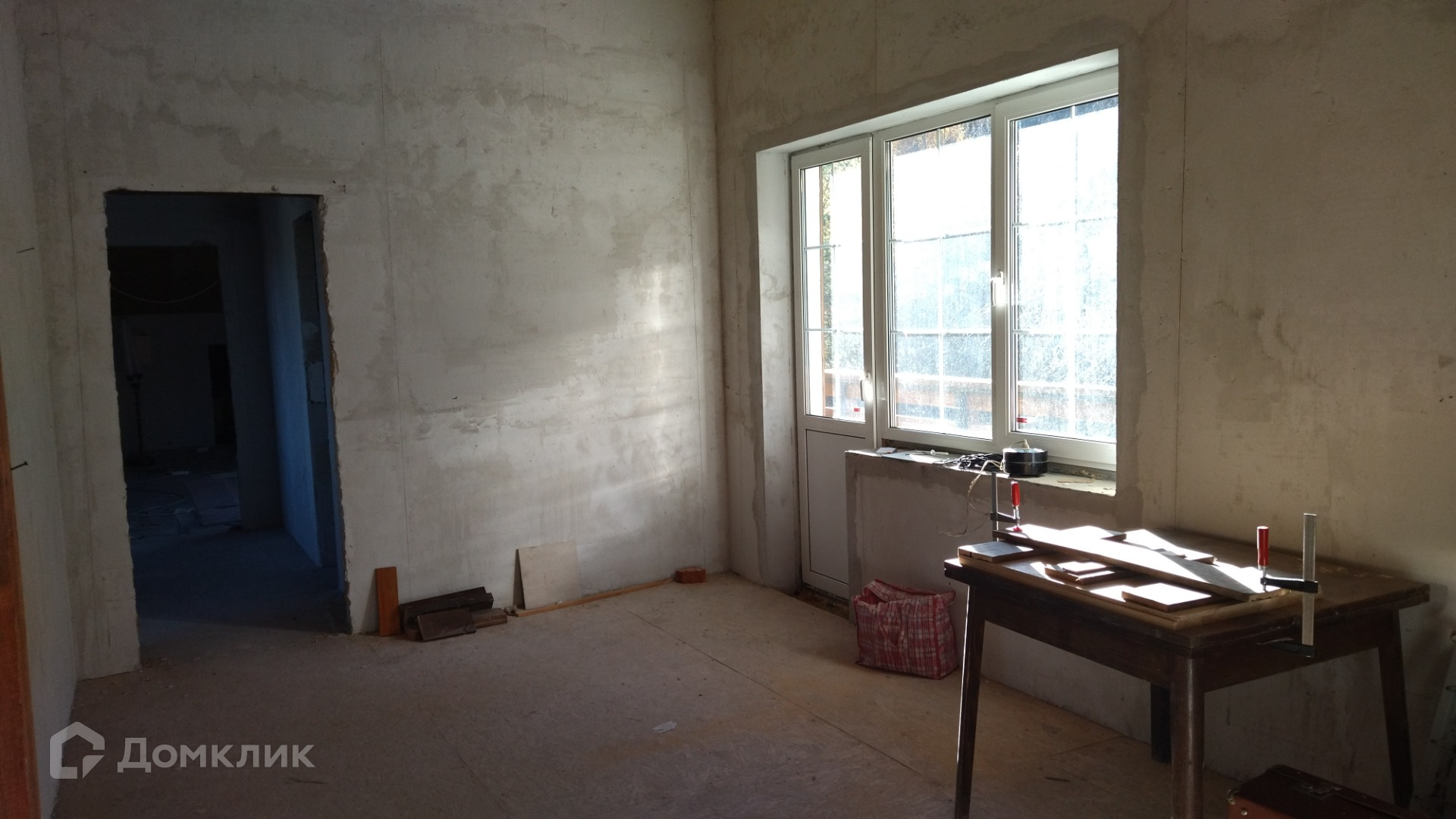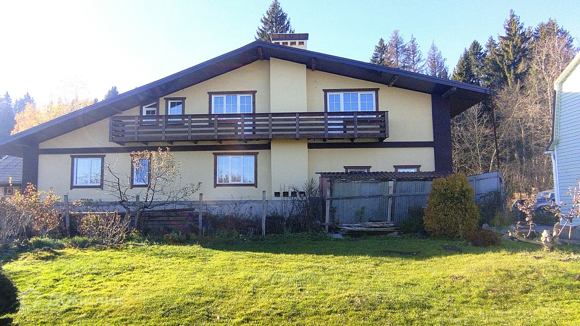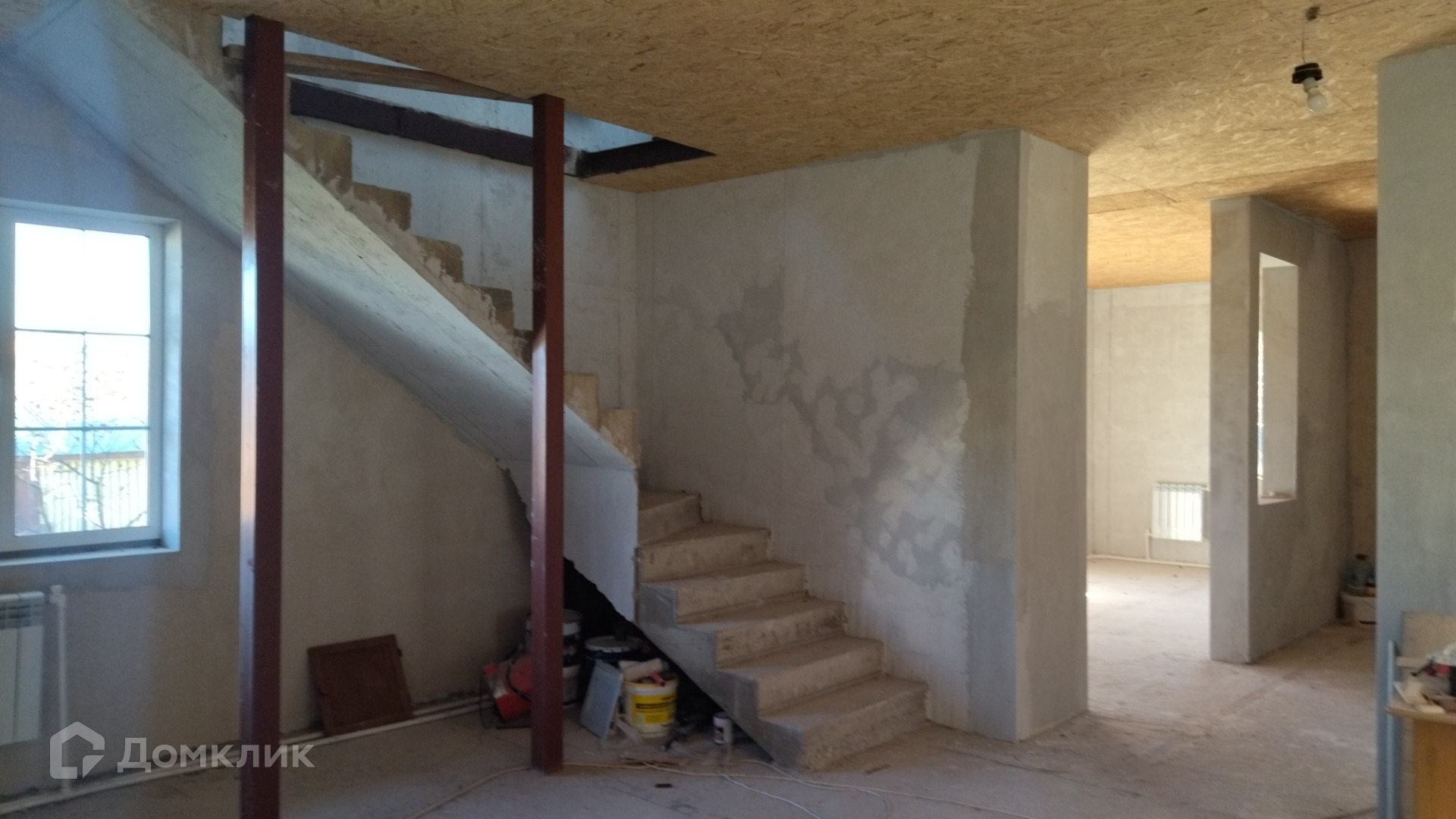 Дом построен из пеноблоков, утеплен по фасаду, выполнена наружняя отделка, установлены окна с двухкамерными стеклопакетами. На первом этаже  - гостиная, кухня, санузел, , бойлерная, гараж на 2 автомобиля. На втором этаже 4 изолированные комнаты и помещение под санузел. Комнаты второго этажа имеют выход на балконы по обеим сторонам дома. Межэтажная лестница из бетона. Установлен пеллетный котел и радиаторы отопления. Участок ровный, крайний к лесу.